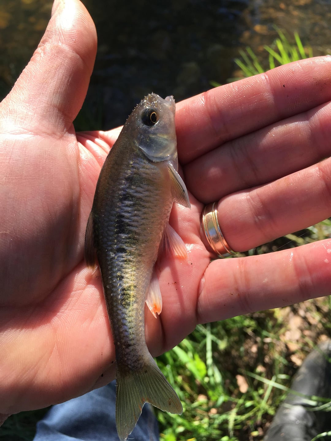 Rock bass and a fat common shiner. ( I think! )