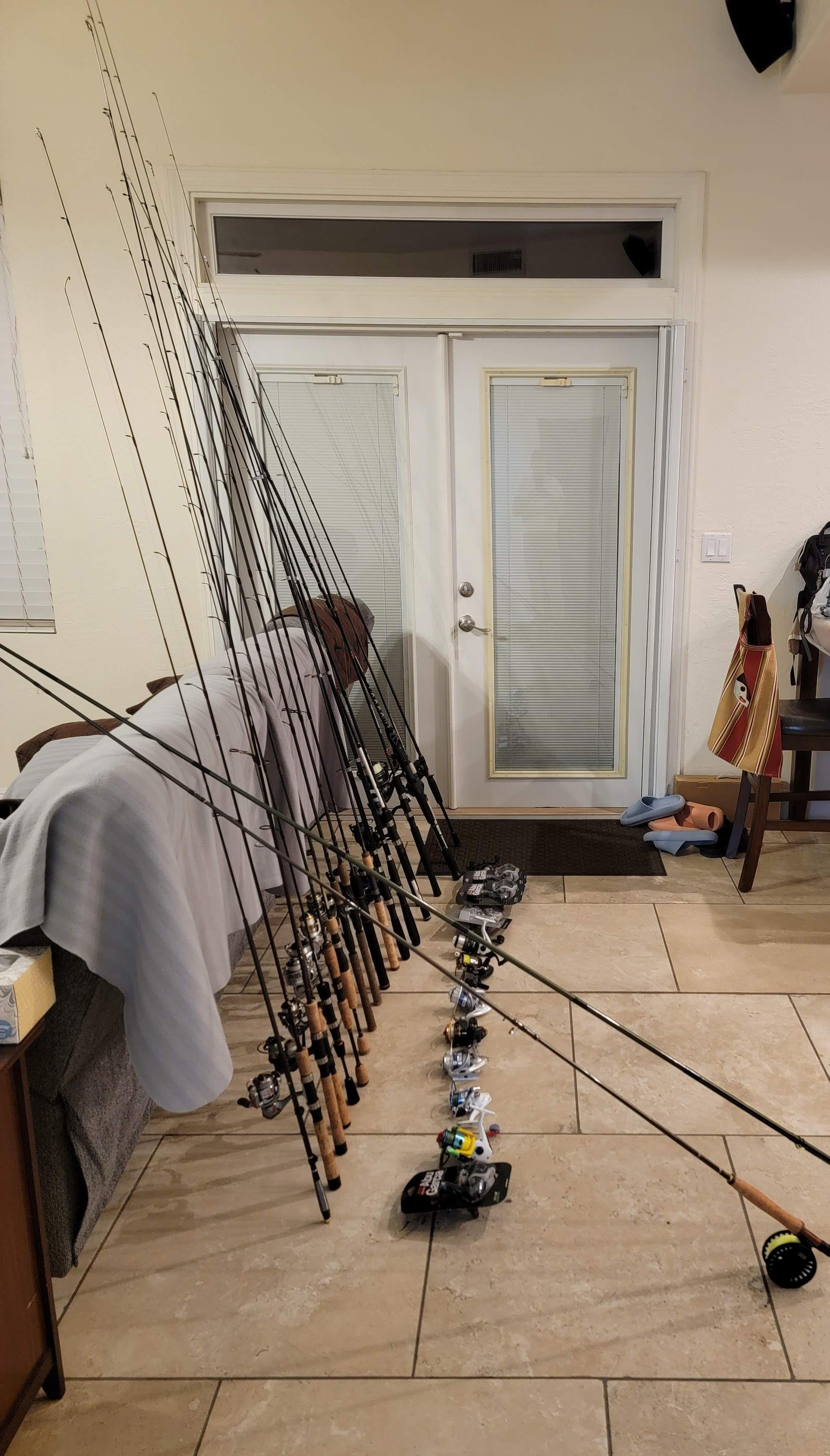 1. I want….bass, trout, cat, crappie, red ear, blue gill……I just want some fish but I got about half of the freshwater gear out and my wife took a pic saying that I might have a problem.