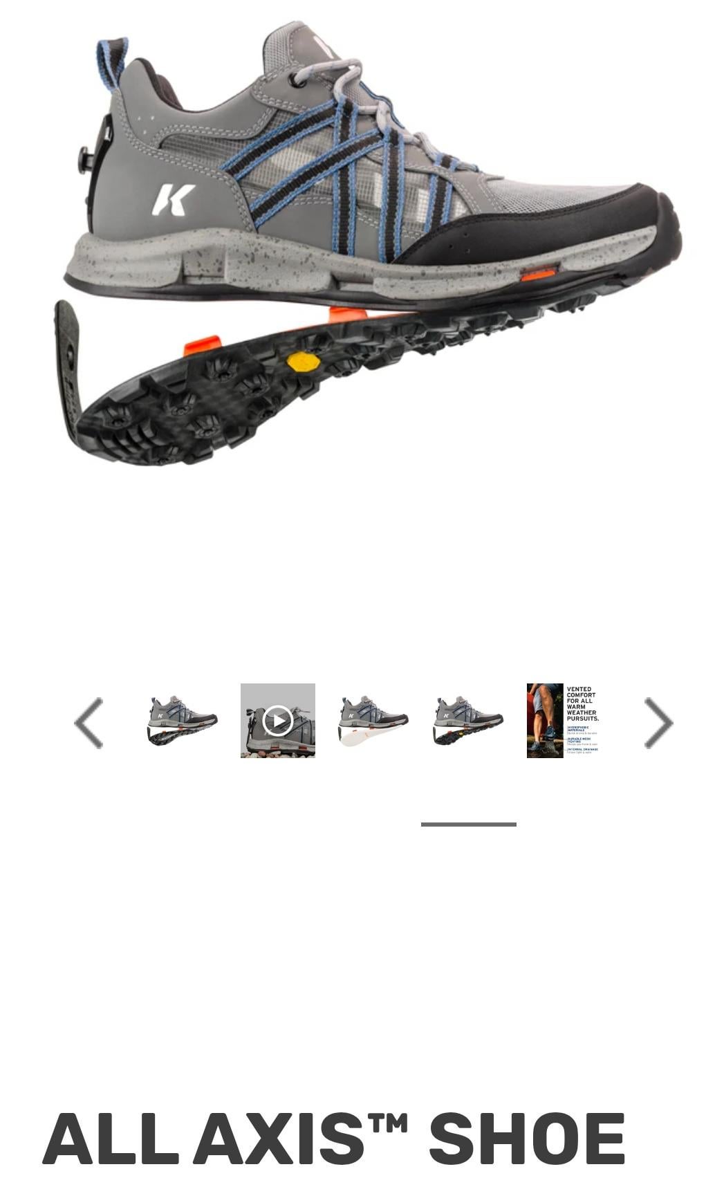 I LOVE them. Got them when they were first released — have been using regular Korkers wading boots for years. Just used them last weekend on the east slope of the Shenandoah National Park. Hopped in and out of the water, did a lot of rock hopping and wore them on the hike out, which was a pretty rigorous uphill climb. They fit like regular sneakers, so if you plan to use a neoprene wading sock, I’d take that in to account. I wear them with Simms “wet wading socks”. As far as soles, the rubber ones with the small carbide studs are the best wading boot soles I have ever used.