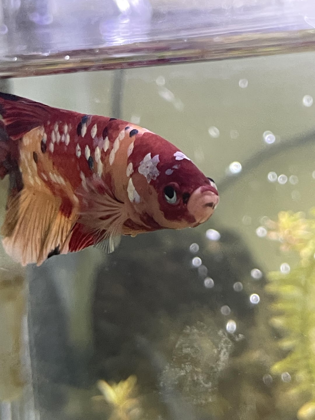I told myself never again but I impulse bought this dude 😂. Saw him, I loved his colors and he came home with me. He’s a king betta. Named him Gyarados.