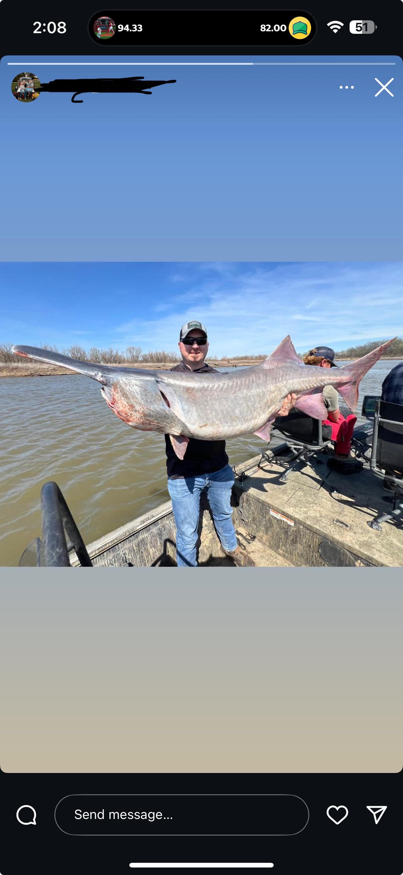 American Paddlefish. I’d toss it back because I’m a conservationist on vulnerable species.