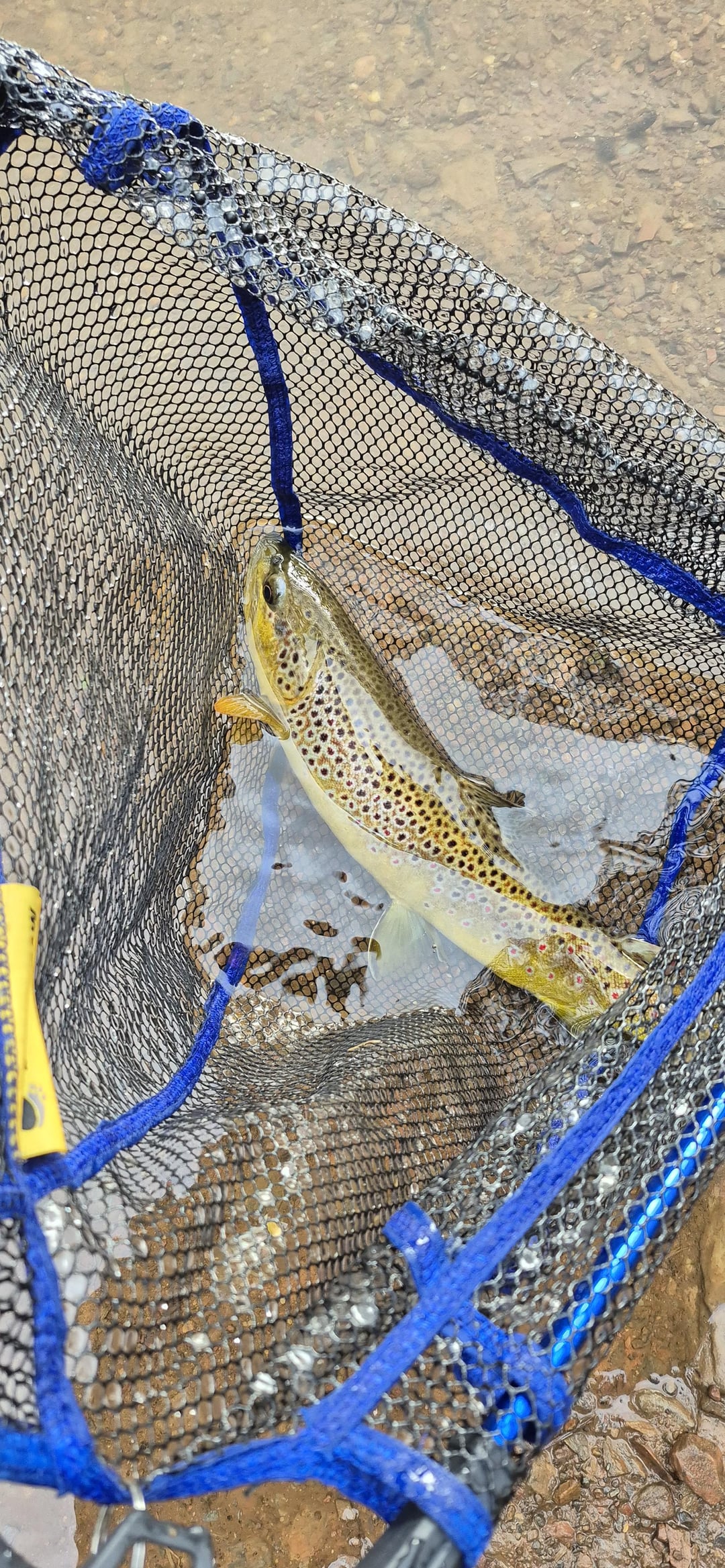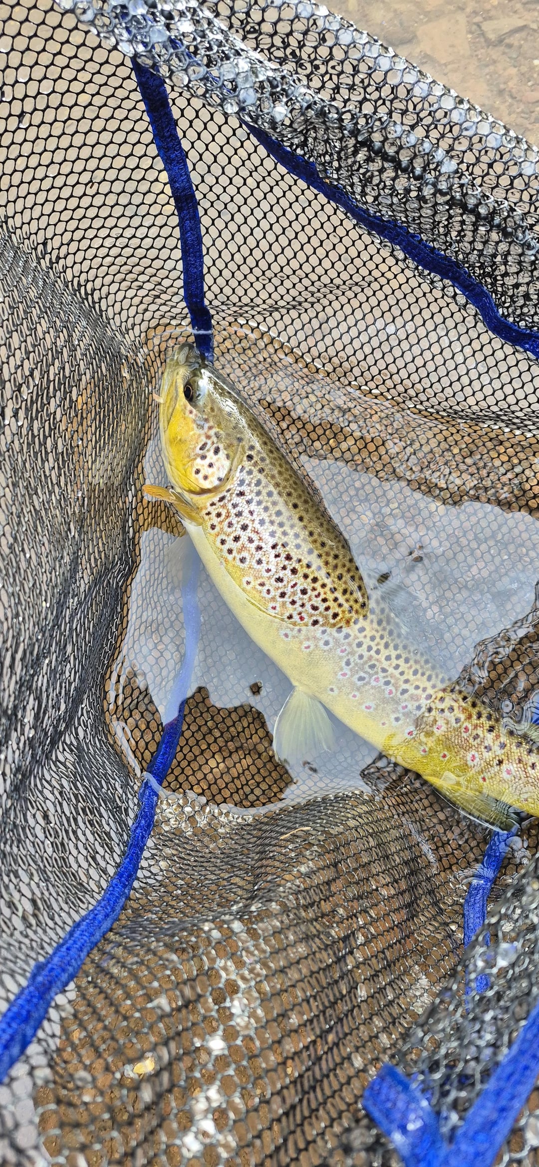 Slightly chilly, windy day…overcast..some personal family issies..time for a mental dayb work break and cclhase the browns…took a drive to a gold country, california fooothill lake and spen about an hour fishing…this is the second of two caught…black maribou jog for this one and first one was on a rapala type…sorry about quality of photo, wanted to keep fish in water