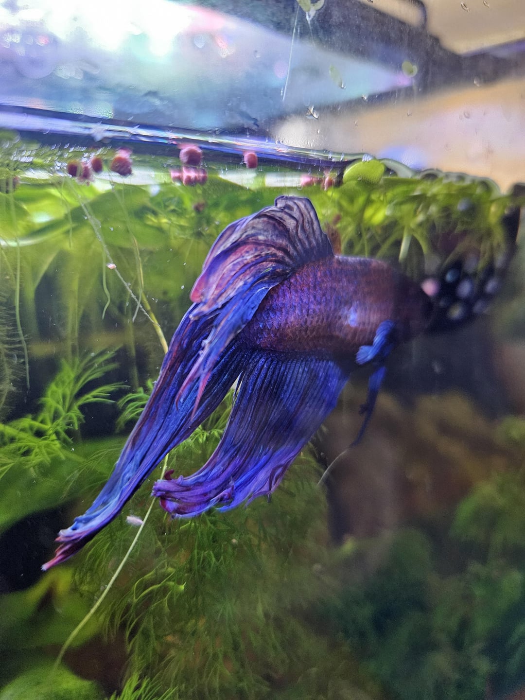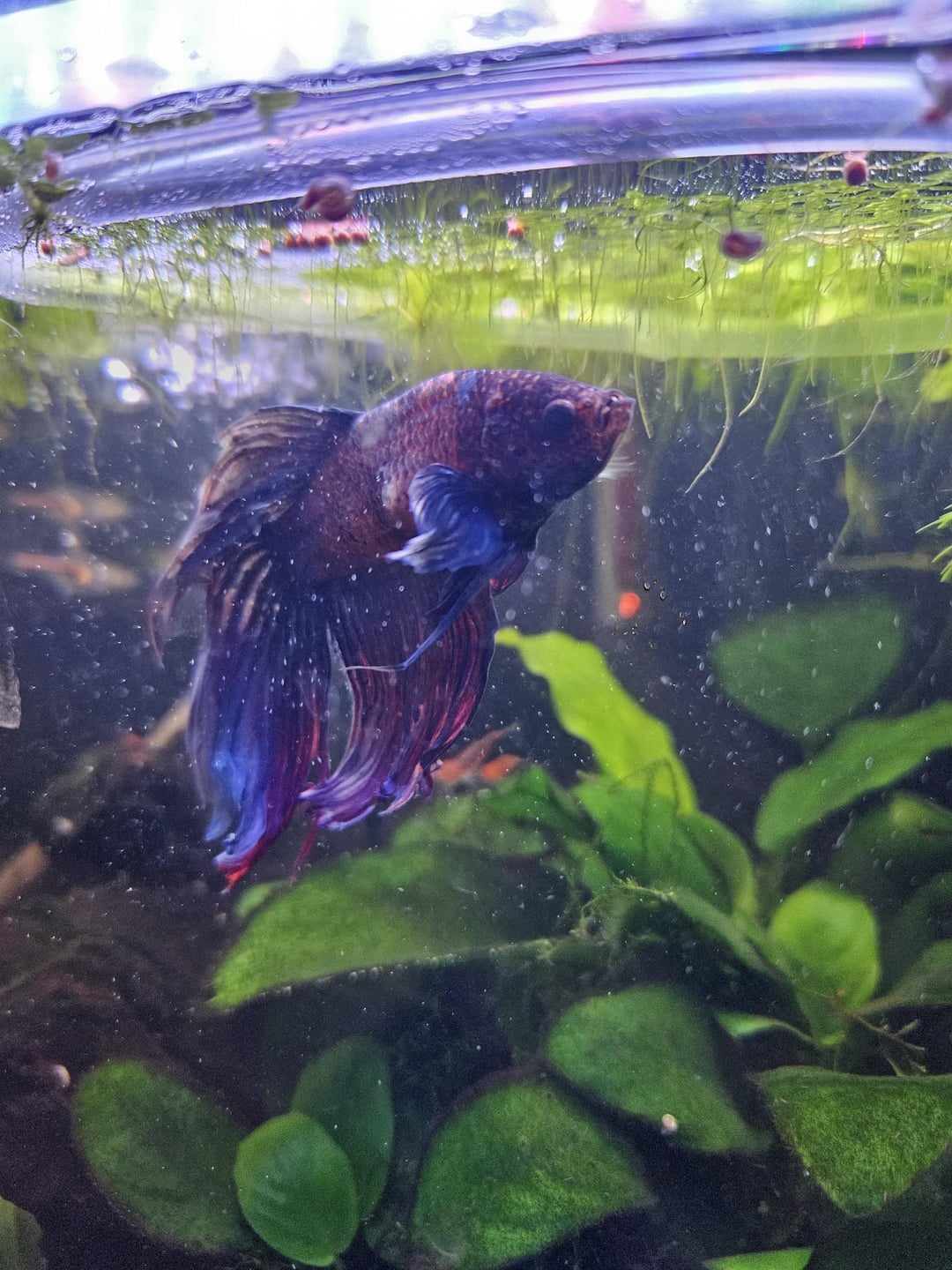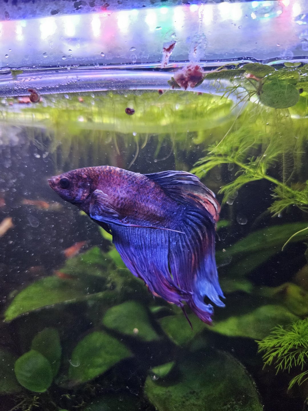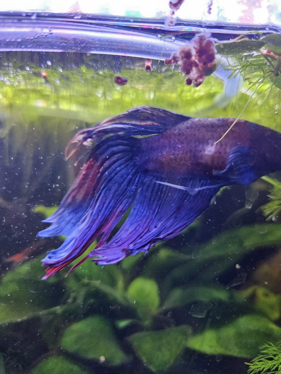 About 2 weeks ago I've noticed these growths. He's still swimming but it looks like it's much more effort to swim and he no longer likes to swim fast and flare play with the mirror. He's more sedentary and I've noticed him laying down alot more on a leaf of the bottom of the tank.