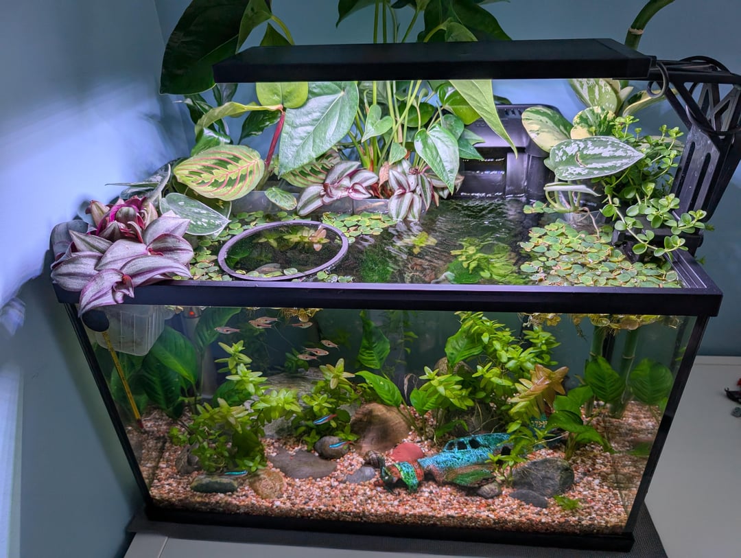 Looks stellar, so many plants. Hope you take care of them all well. It’s understocked too. This is a dream setup. You clearly know what you’re doing, and I’m hoping your “son” will love this hobby as much as you do.