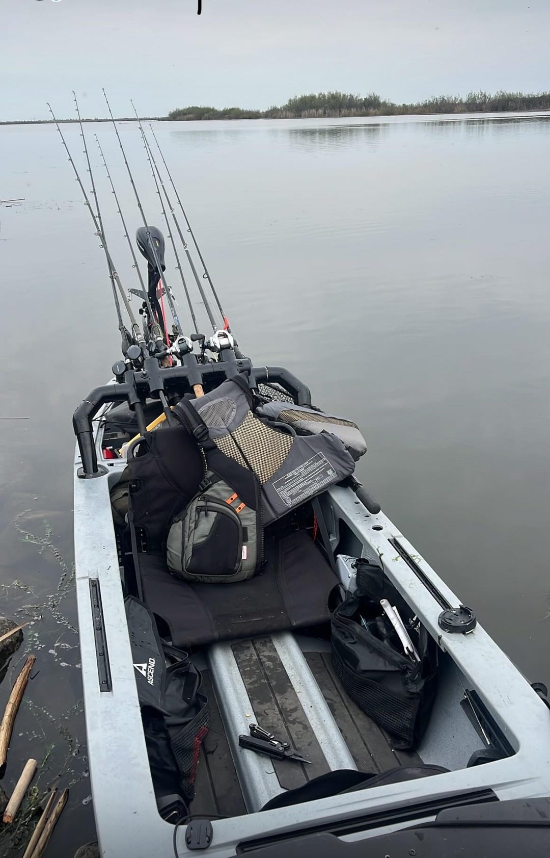 Picked up this ascend 12H yak. Installed 40lb thrust minn kota ran on a 100ah lithium battery and set it up with foot steering. Rod holder houses 7 rods and built a harbor freight trailer to haul it around. Little different than my bass boat but lots of fun!