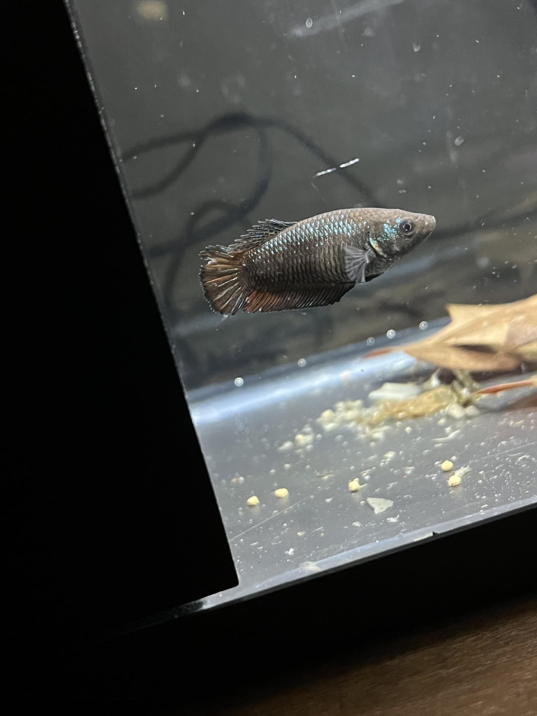 I went to my local fish store and they had one sad looking female left in their sorority tank. I bought her for 2.99(im friends with the people there and they gave me a big discount because they knew I’d give her a good home. This was her the day I got her and then her after a few days with me.Im excited to see if she changes colors being in a tank by herself with a heater. Apparently she’s fairly young too.