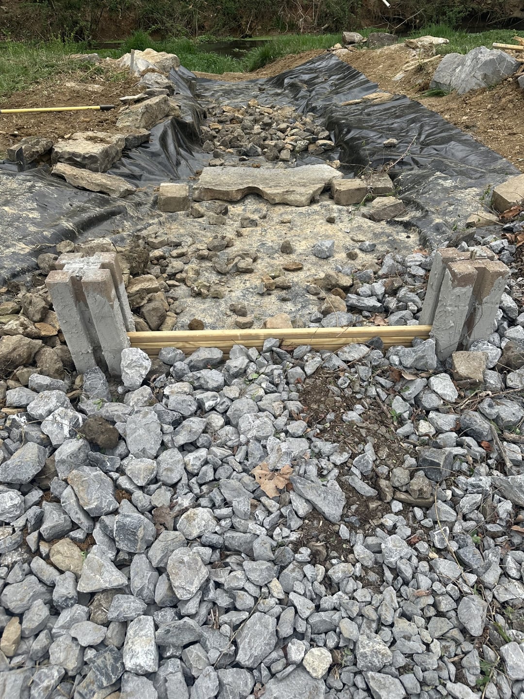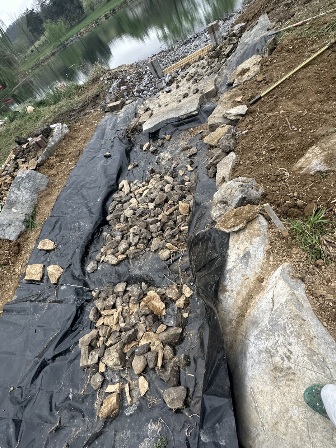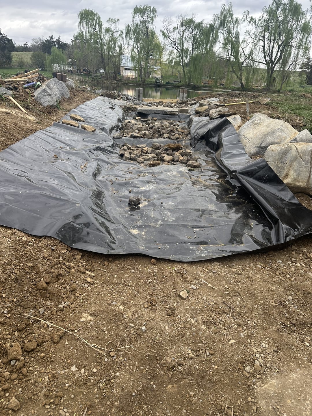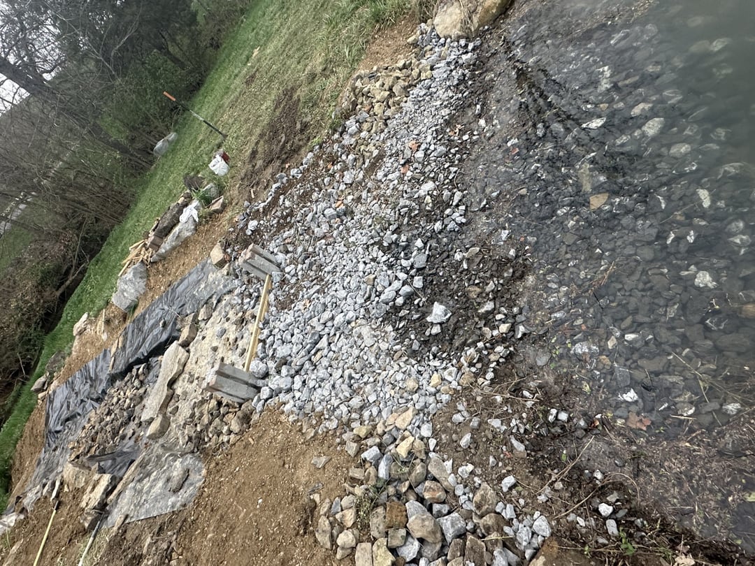 We are finishing up repairing our pond spillway and just wondering if the rocks and rip rap will be enough to contain the fish or if a galvanized wire mesh or similar barrier would be required to hold back trout and large mouth.