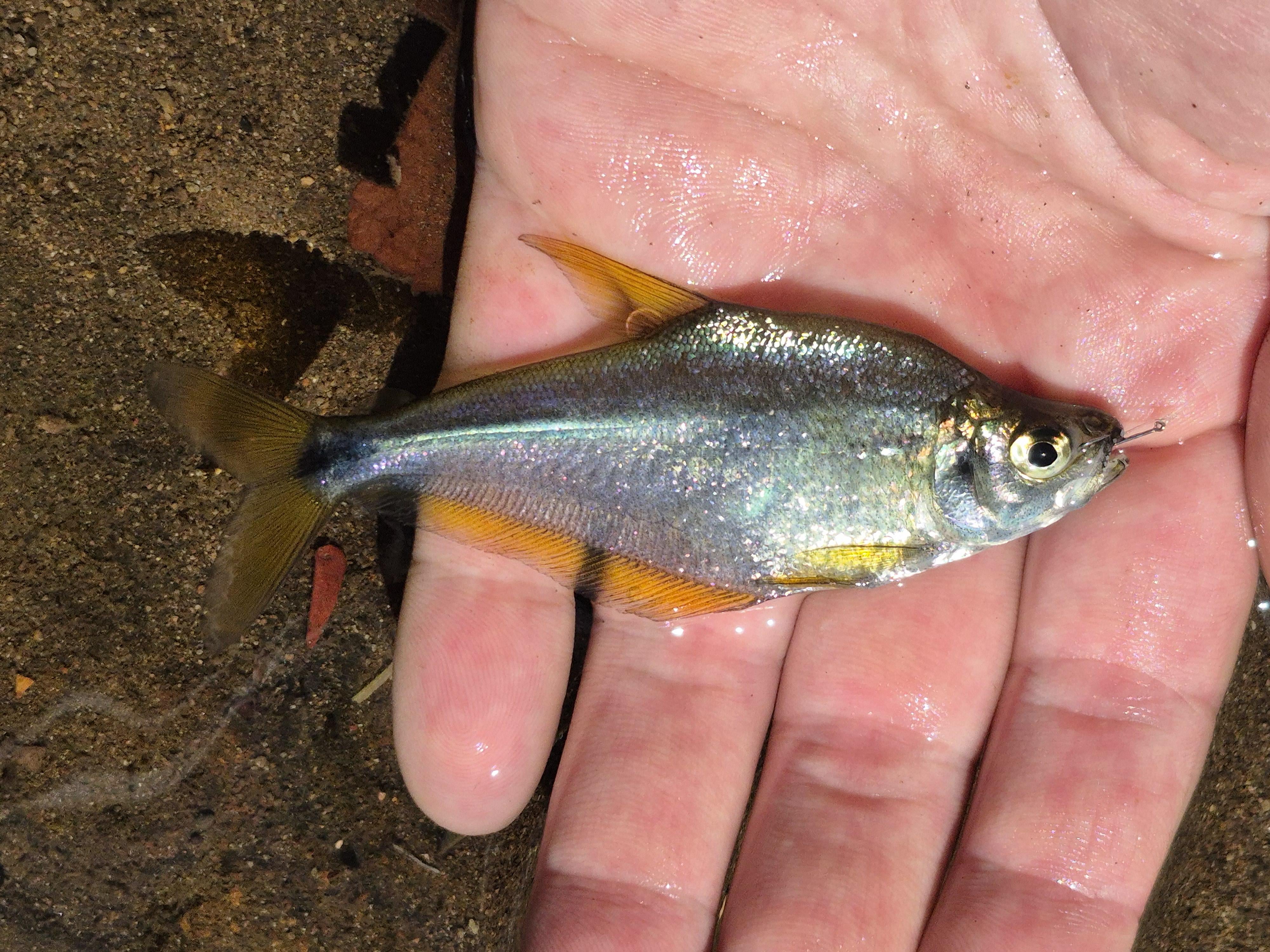 Crystal tetra from Costa Rica. Caught on a size 18 fly hook and an unknown species of tadpole. Posted by ThornOvCamor