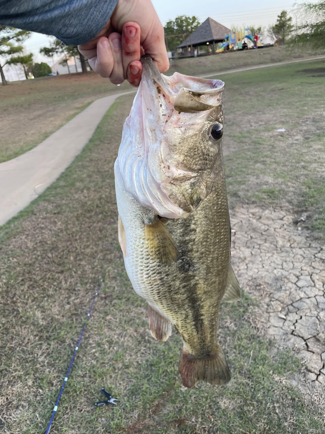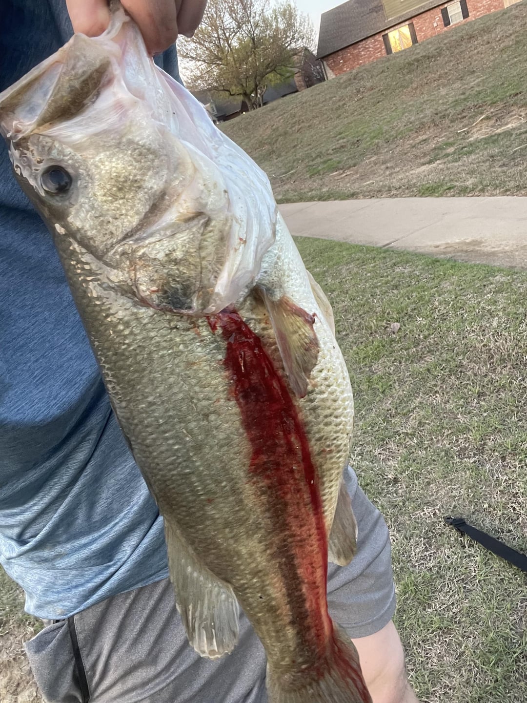 I was fishing on a pond across the street, but the fish I caught was massive, sadly the way he ate it it hooked his gill or one of them and so I put him back, hoping he could survive and the lure I used was called an NRV baits Creekbug