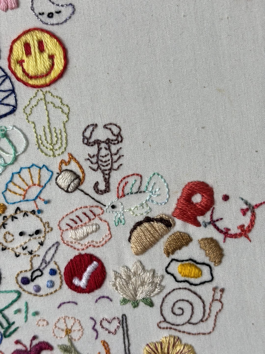 I picked up a $1 betta from the adoption shelf and am ooooobsessed with herrrrrr. Her name is Aurielle (think of how cartoon Sebastian pronounces the little mermaid’s name), a combo of aura/estrella. I embroidered an icon to represent her on my daily journal 🪡