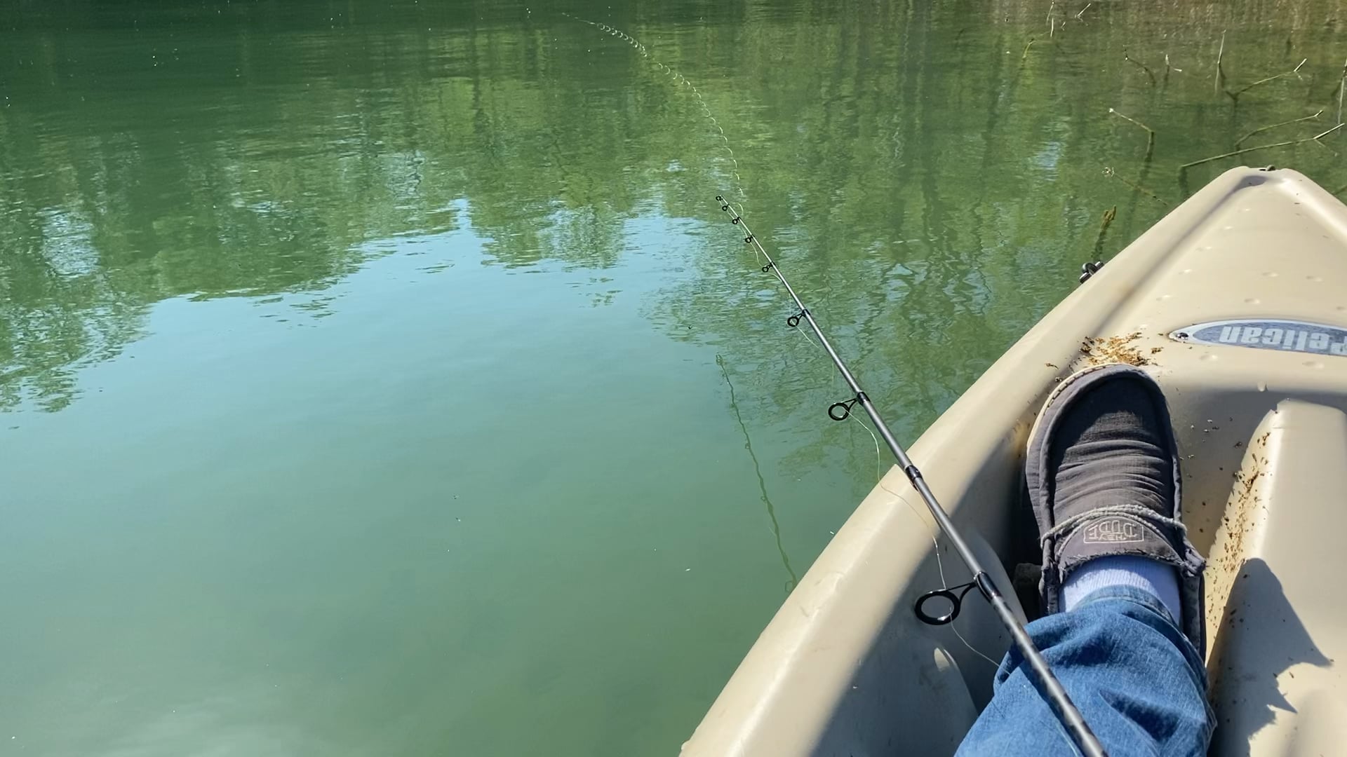 Video doesn’t quite do this water justice. Lake Murray, Oklahoma. It gets shallow near the shore here, but my kayak is sitting over 10 feet of water and you can still see the bottom clearly.