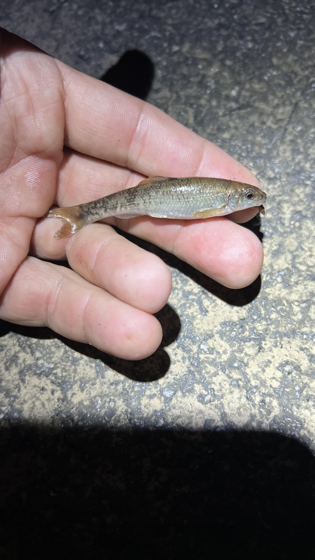 Channel Cat, Smallie, Yellow Bullhead, Green sunfish, River Chub, Tesselated Darter, Central Stoneroller, Redbreast Sunfish.