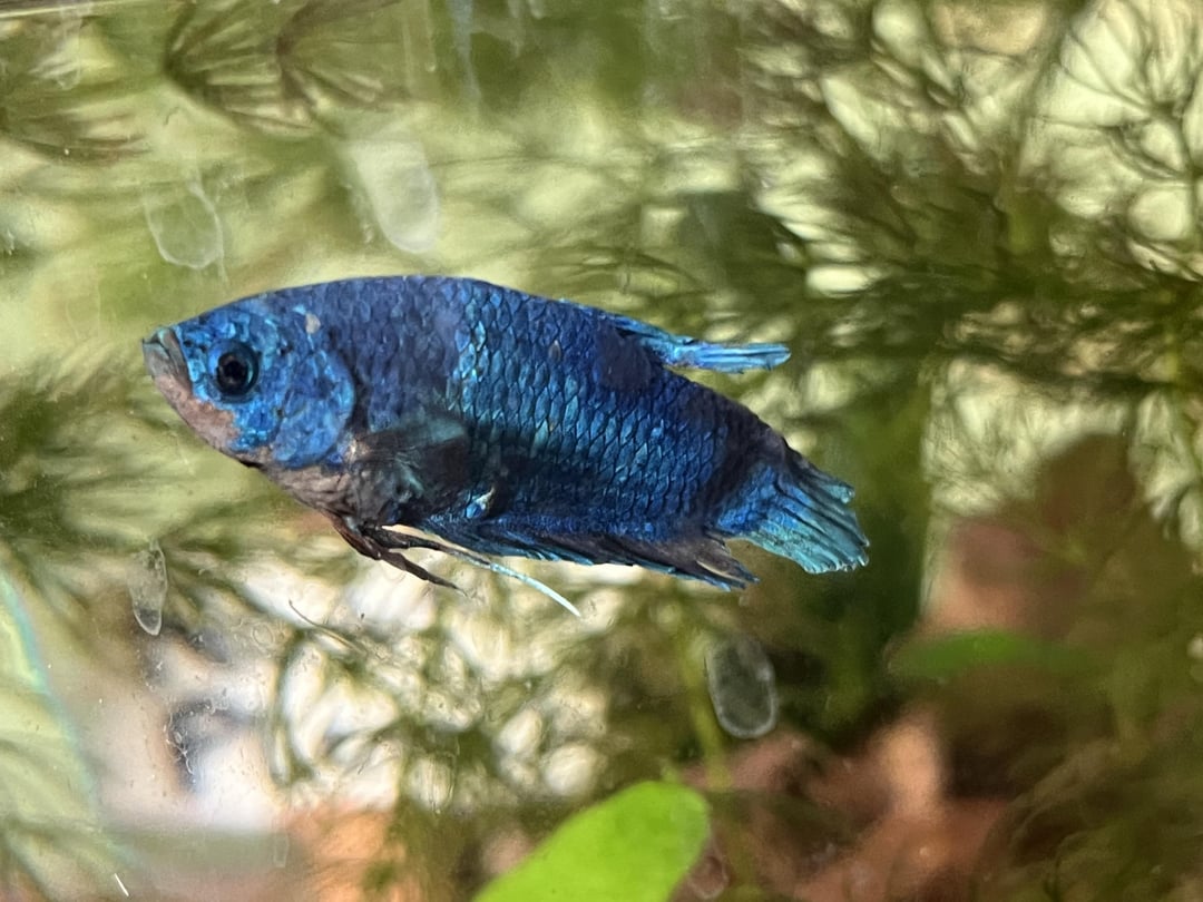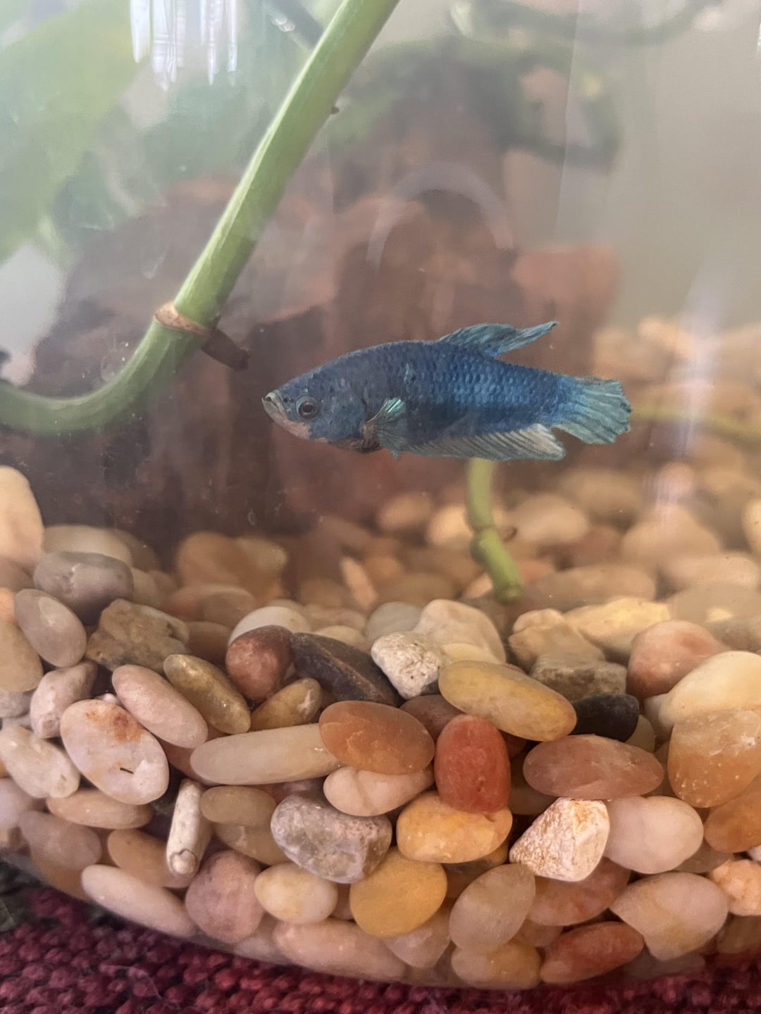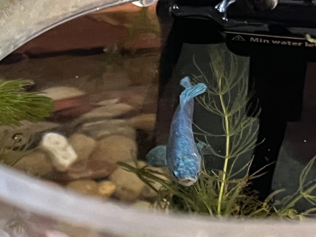 Got him about two weeks ago not knowing anything about bettas. I got an api test kit and a heater, some live plants and did a fish in cycle. He’s in a 3.5 gallon (I know not ideal – have plans to move him to a 10 gallon community tank in the near future), ammonia is 0, nitrite is 0, and nitrate is 5ppm, ph is 7.8 and he is at 76 degrees with his heater since our furnace isn’t working, he’s usually at 78 or 80. His Finns look clamped and he has this weird looking scale by his fin (second photo). He’s acting normal as far as I can tell – has a huge appetite, jumped out of the water last night when my girlfriend started feeding him. I have noticed he’s been chilling at the bottom more than normal but not for very long so I thought he was just resting. The last photo is him the day I got him, looking cute. In the ones I took this morning he just looks very rough and sick. Please help me help him 🥺🙏