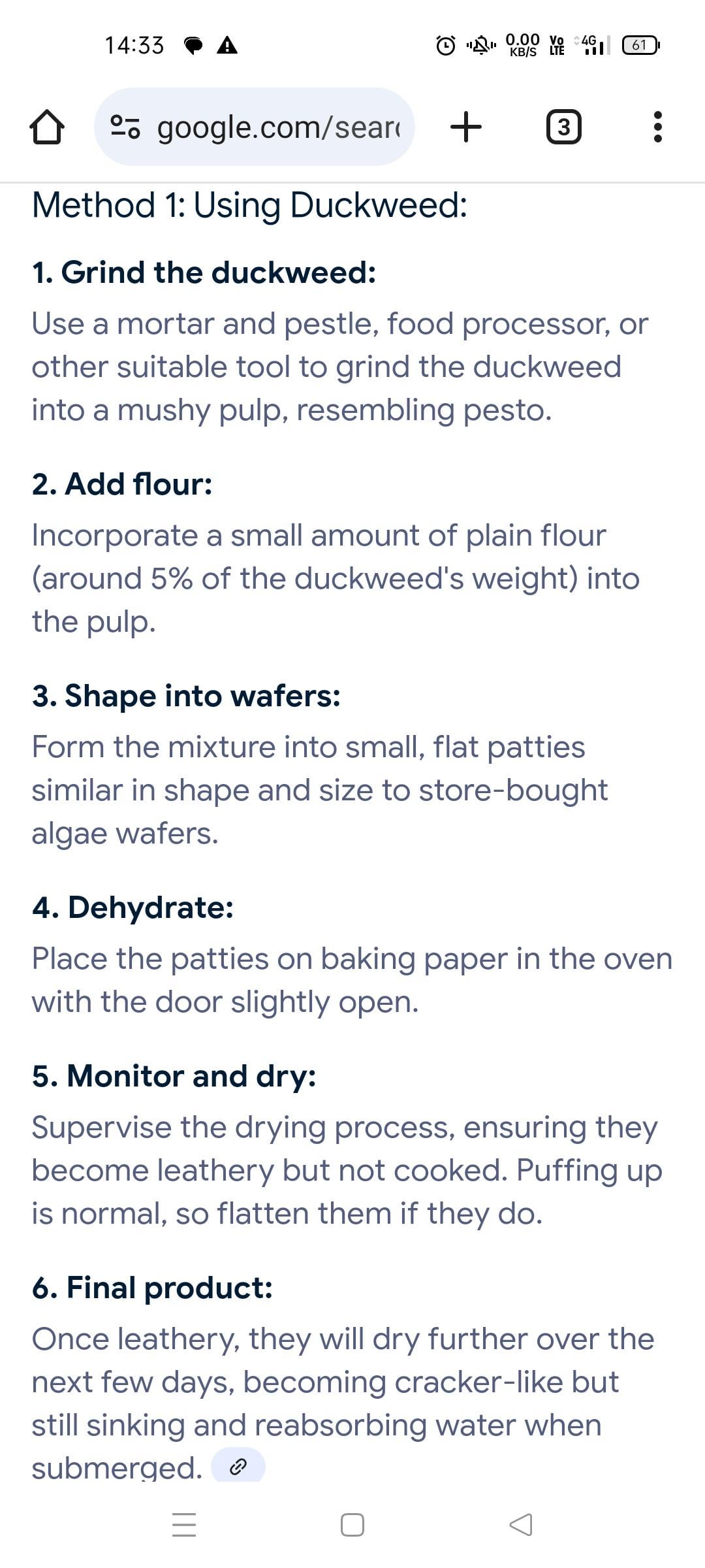 I found this one online, is flour safe for fish? I want to be able to use the duck weed in my tank rather than just chucking it.