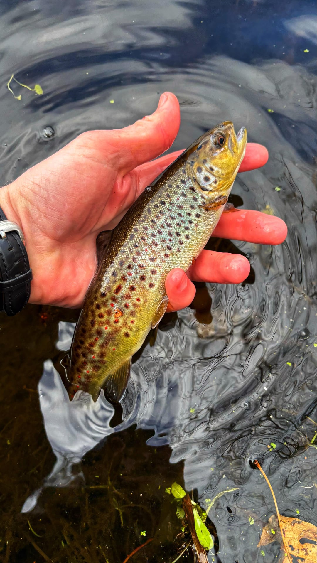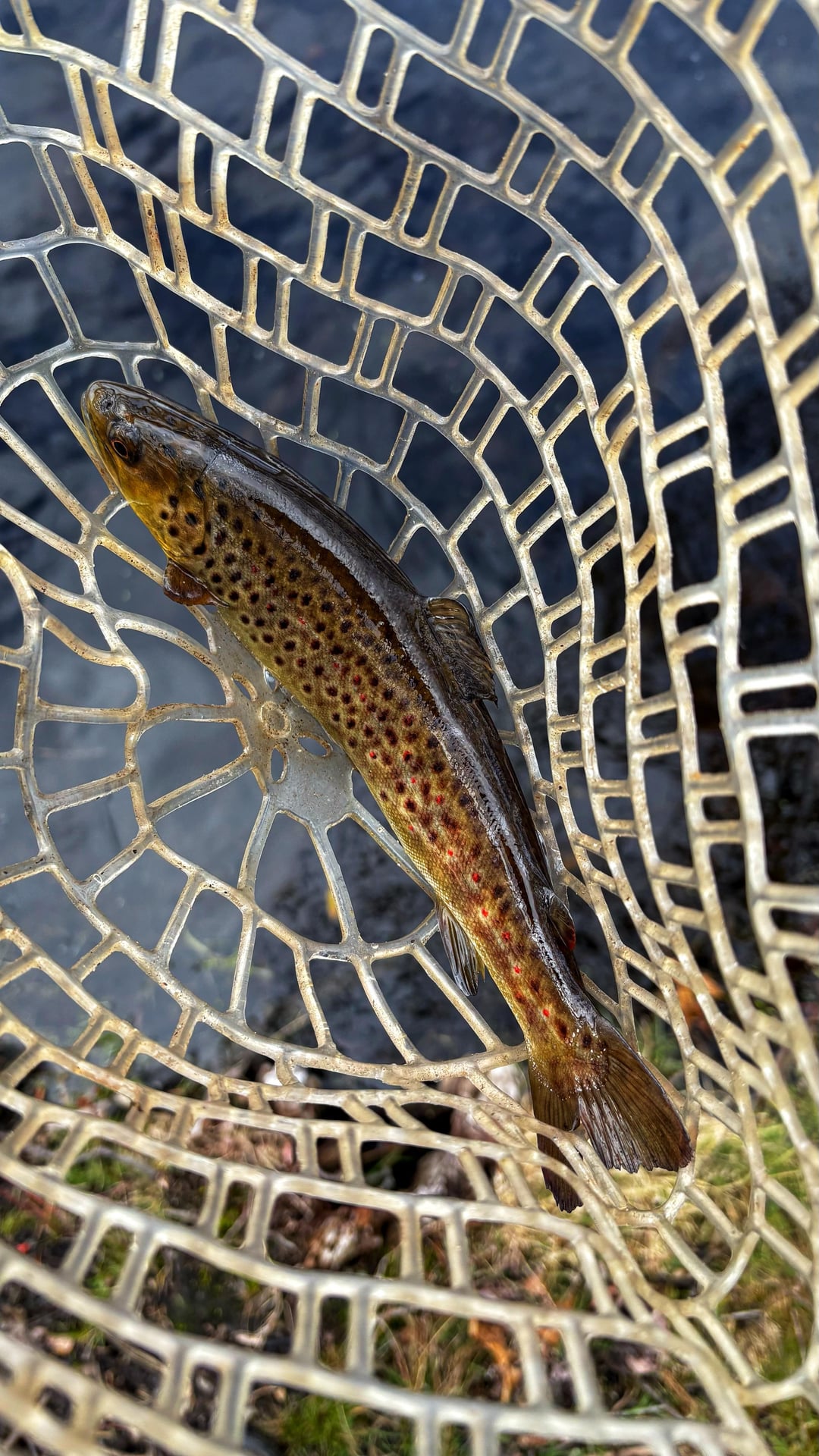Gotta be stocked right? State trout stocking report shows they haven’t stocked anywhere near where I caught him, but perhaps he traveled. Tail looks good but both dorsal fins were quite worn. Posted by tryshpmn
