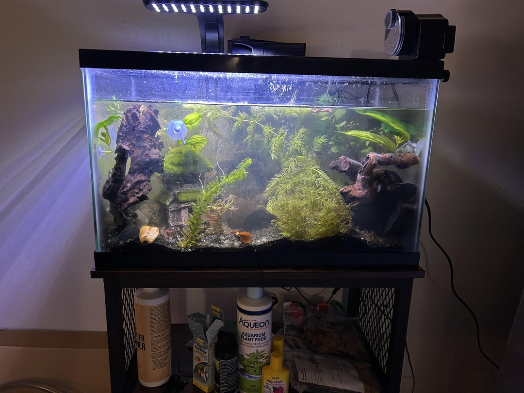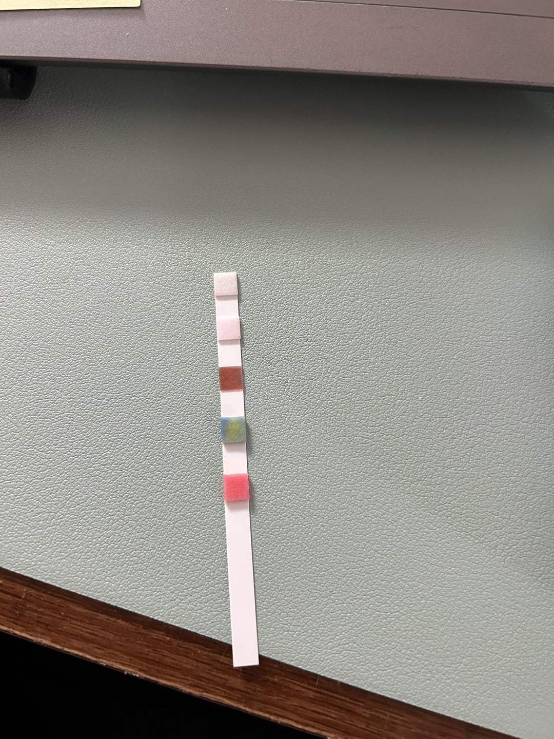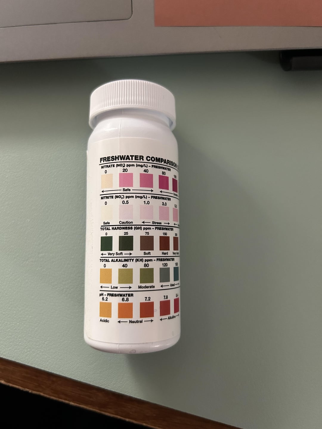 This is a new tank… nearing the end of the cycle. I left my tank light on over the weekend (my tank is in my office at work) and has a massive algae bloom…oops. I picked out a lot of the algae and vacuumed/ did a 40% water change yesterday. My water is still cloudy this morning. Here are the results from the test strip…