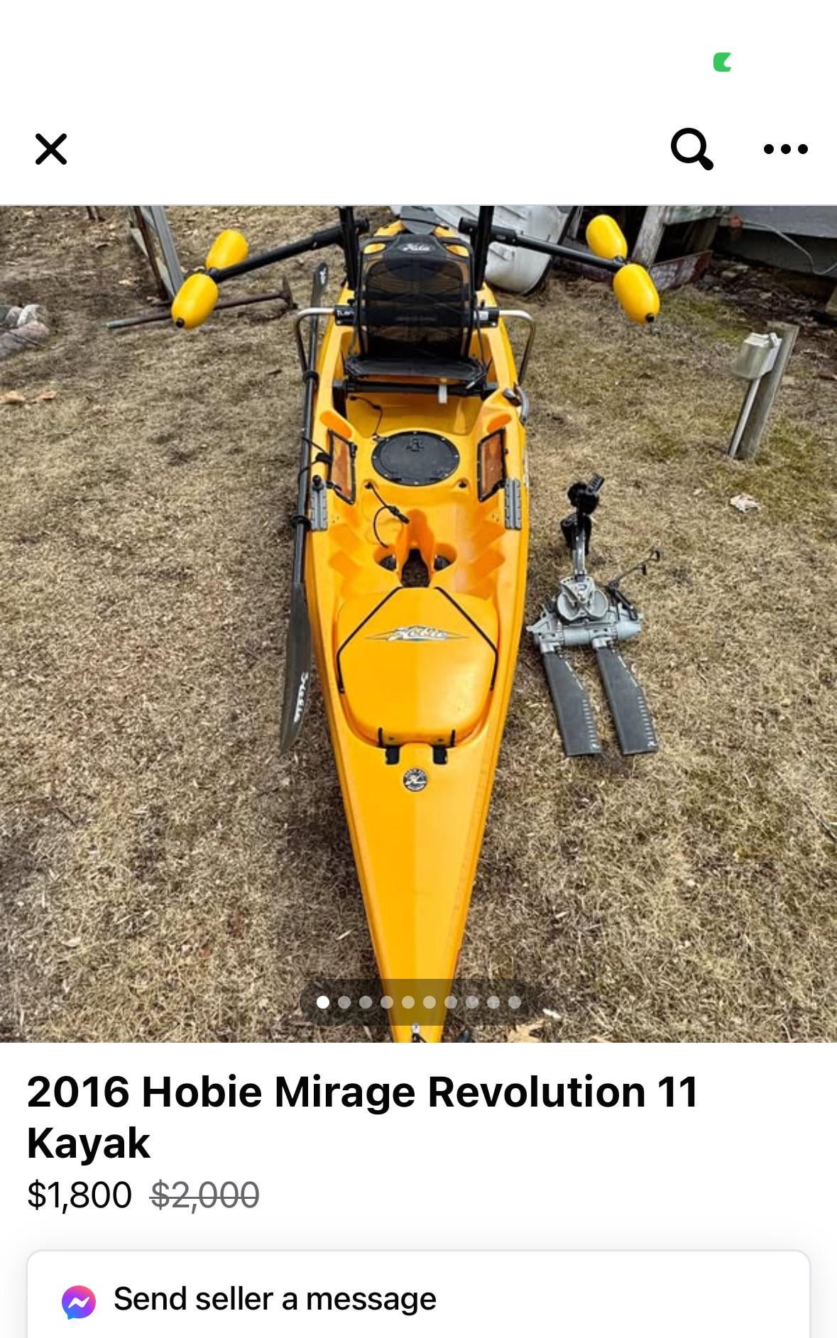 Hi everyone! Looking to buy my first fishing kayak. So far I’ve been looking at the oldtown sportsman 120 (no pdl) but came across a 2016 Hobie on marketplace. Will be used mostly in a lake for cruising and some fishing. Occasional river trips as well. Is this a good deal?