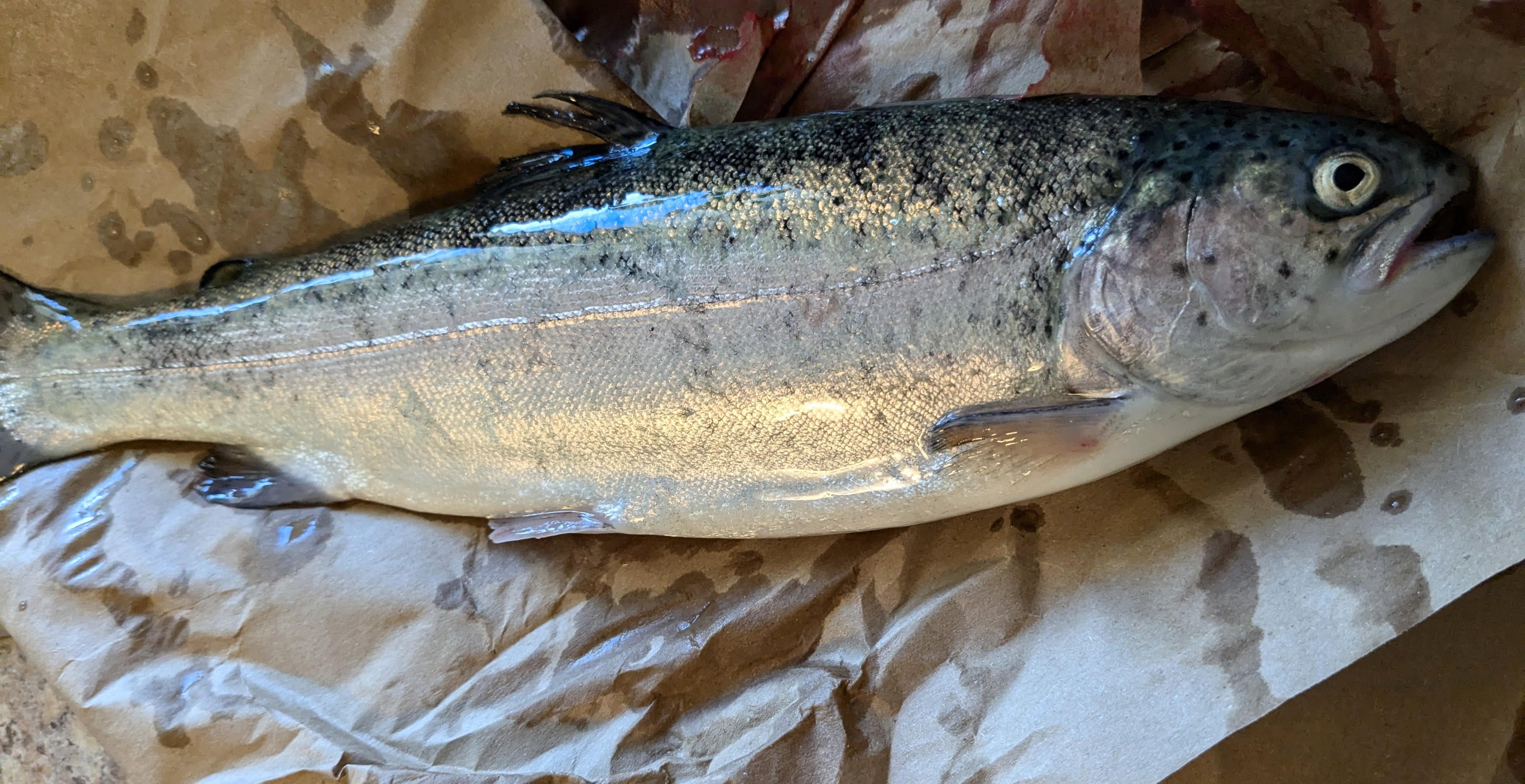 Aside from the other NJ stocker I caught yesterday, caught this one. No fins clipped, absolutely chrome silver. About 12" length. I have never seen/heard of a steelhead being caught in the NB Raritan, just curious because I've never seen a small rainbow in this river this chrome/silver…
