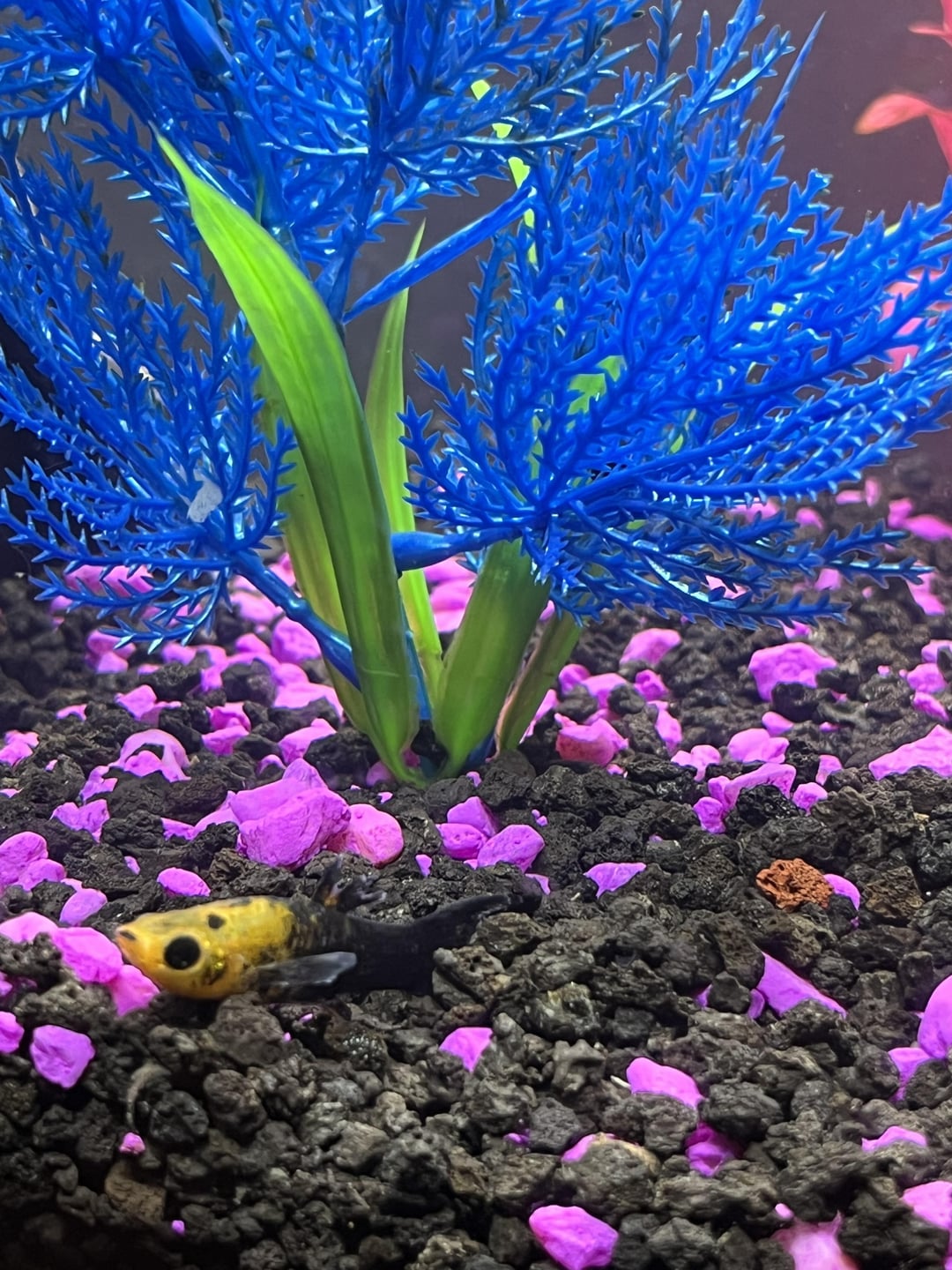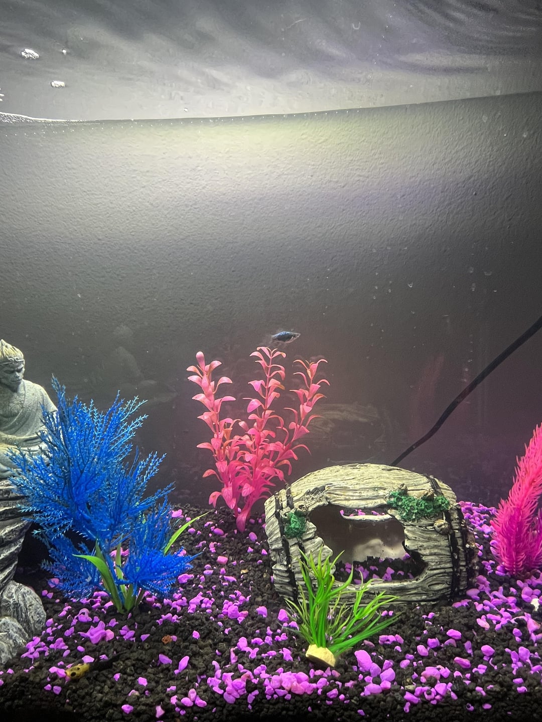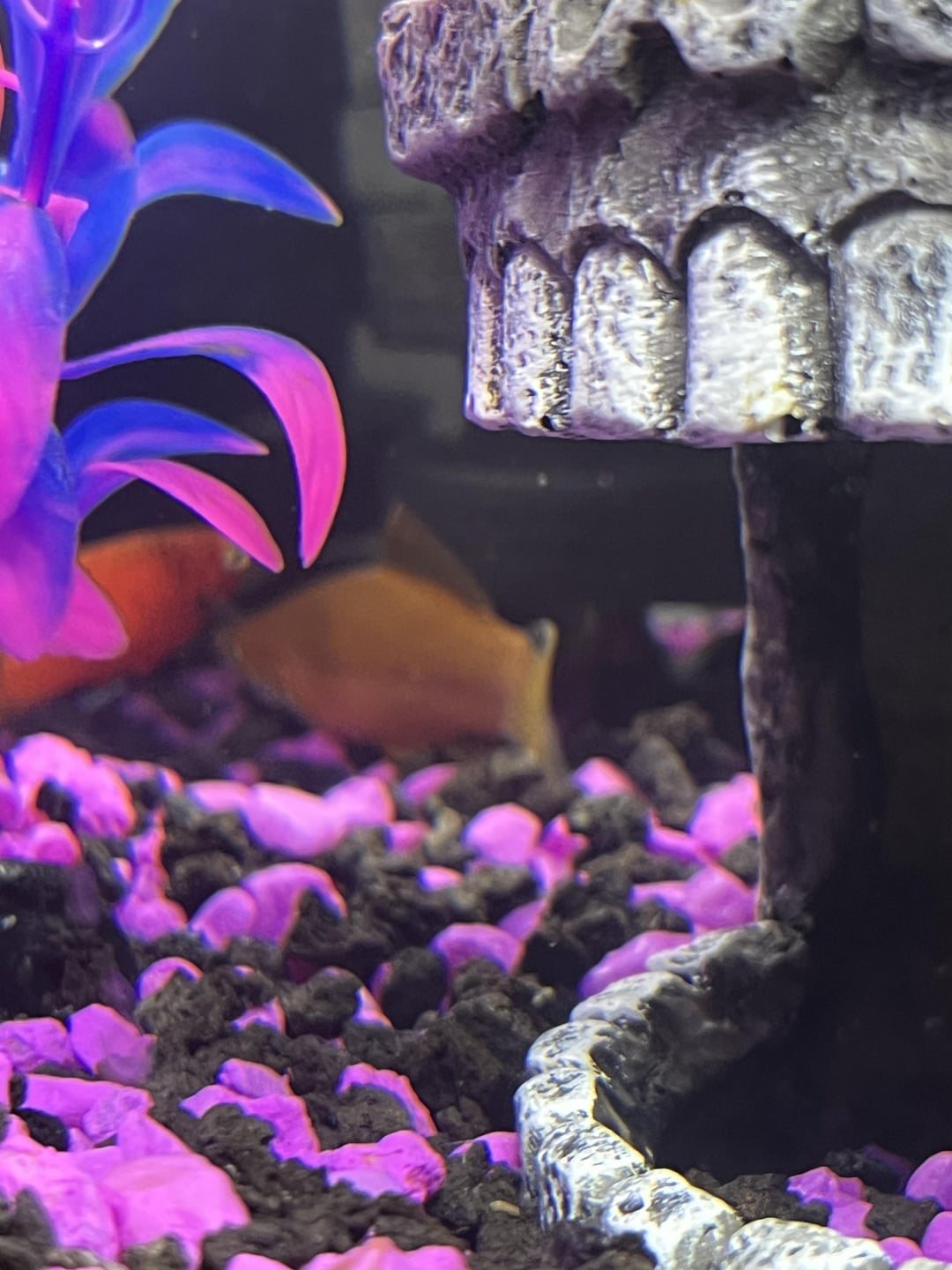 The tank was filled with more props and hidey spots and plants but I took most of everything out bc I’m not sure what’s causing this.