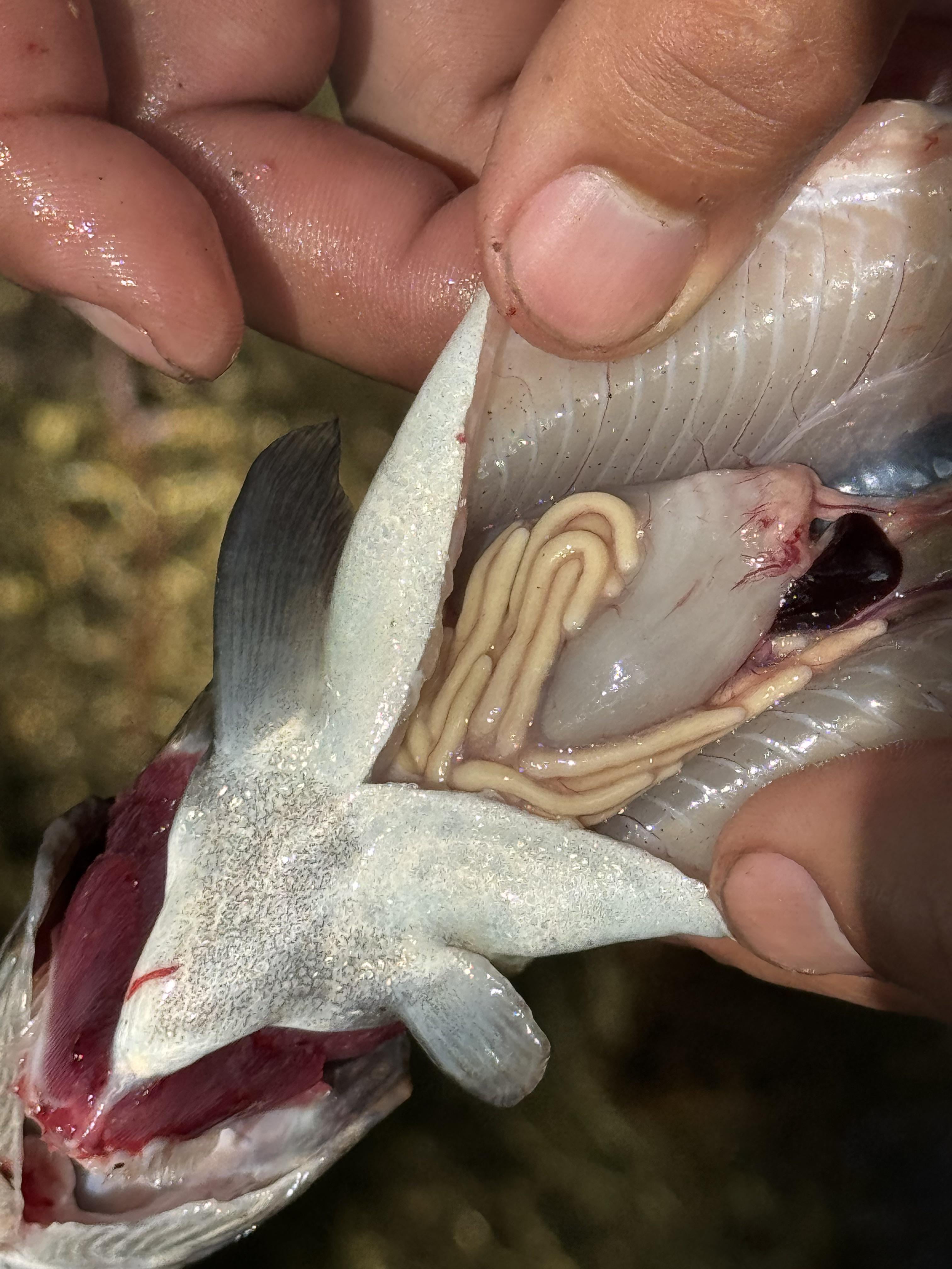 Just caught this rainbow trout and I’ve never seen this before, or I guess just not so exaggerated. I’ve done some research and so far I’m finding that this is the pyloric caeca, not a parasite 😅 but just wanted to be sure
