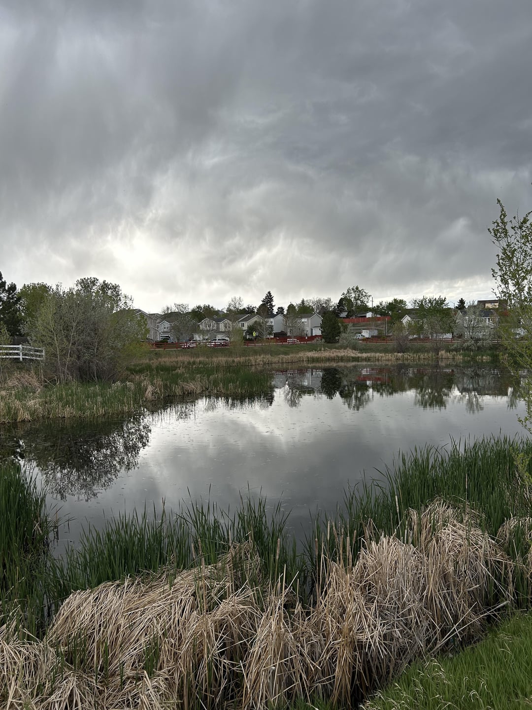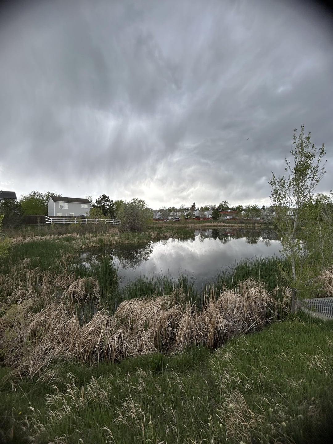 The whole pond is thickly lined with cattails and other vegetation. I’m not sure if there are fish but I’d bet on it.