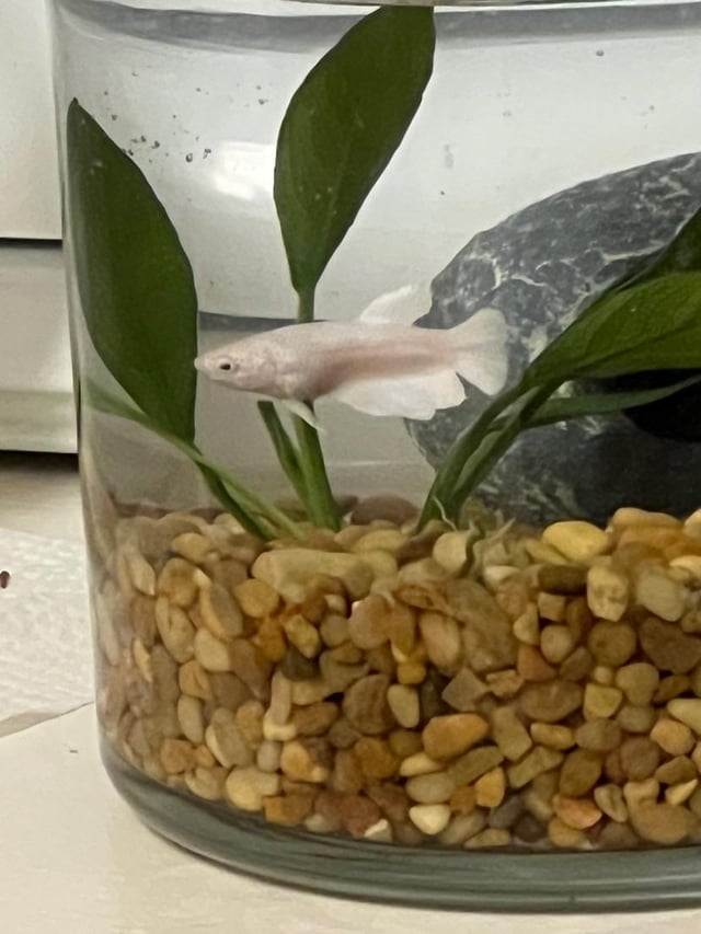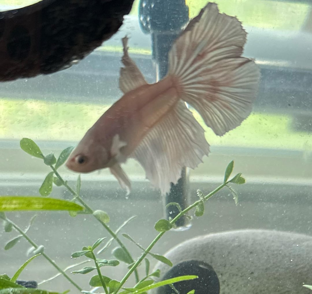 Betta Fish: Is this she a veiltail? That’s what it said on the container when I got her, but her tail has grown a lot. You can see what she looked like when I first got her.