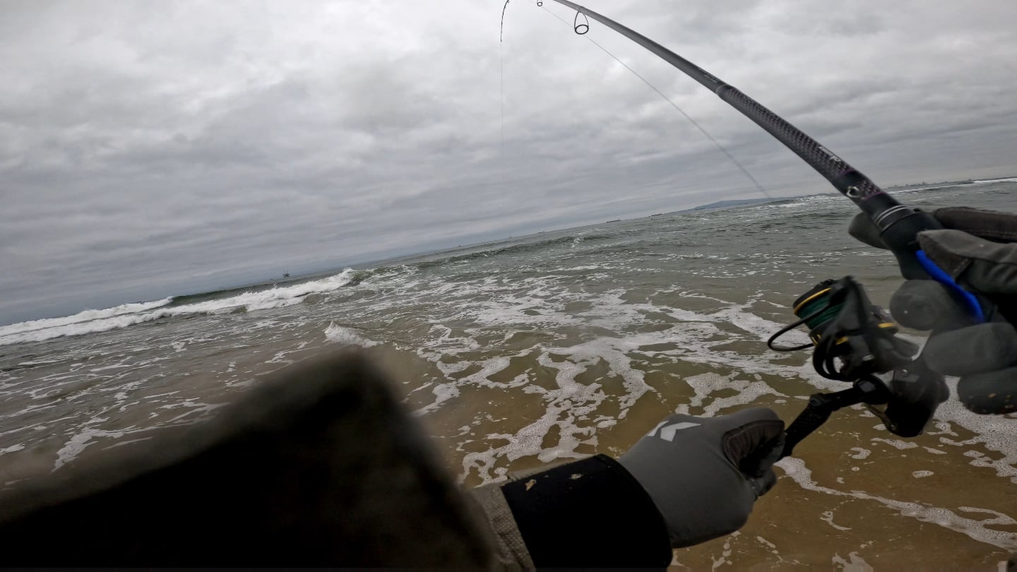 Here's a gopro video of my after I hooked onto a spotted sand bass. Barely hooked on one treble. I caught an 18 inches two weeks ago. This one was 16 inches. Cut the video short cuz of landmarks. Some people dont want this beach blown up. Sorry.