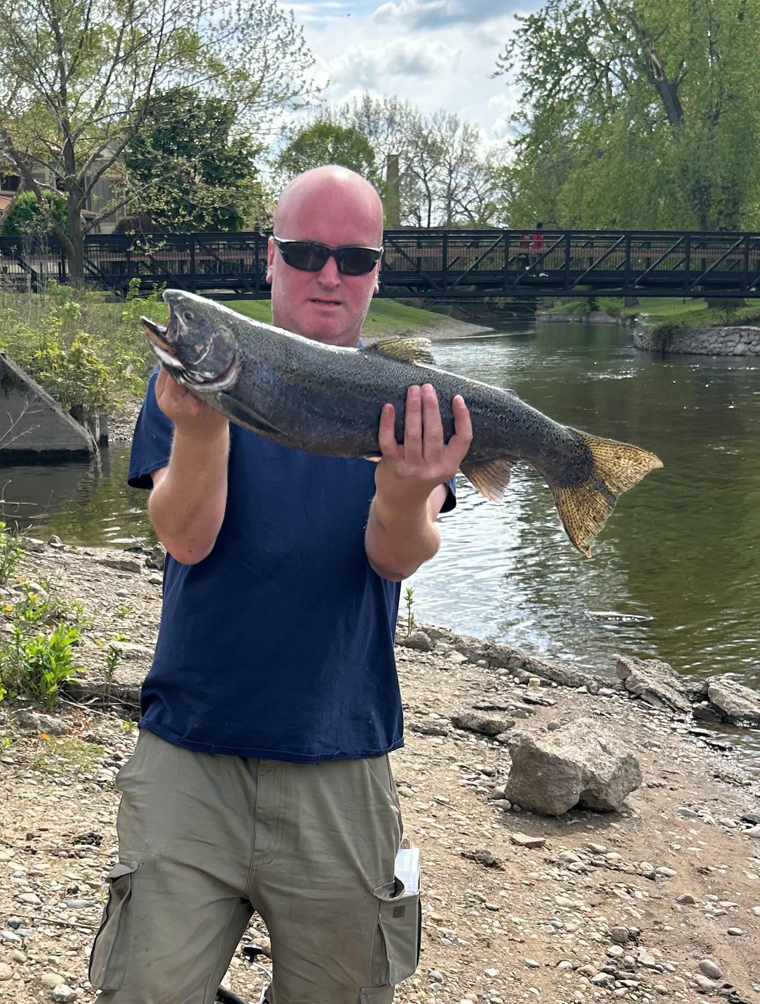 In St Joseph River northern Indiana. This is today within a couple miles of as far as they can run. She was full of eggs. I thought run would be over couple weeks ago but been getting one every time out last several days and seeing a lot more. Also, she's going in the smoker so don't crucify me for gilling.