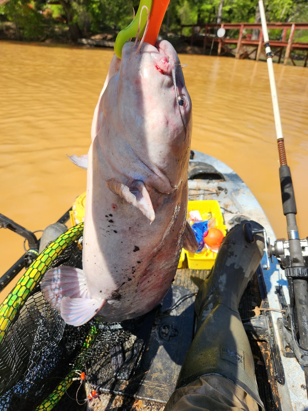 So much fun catching this chunky blues from the kayak. Lake Wylie, Belmont, NC caught on live large goldfish.