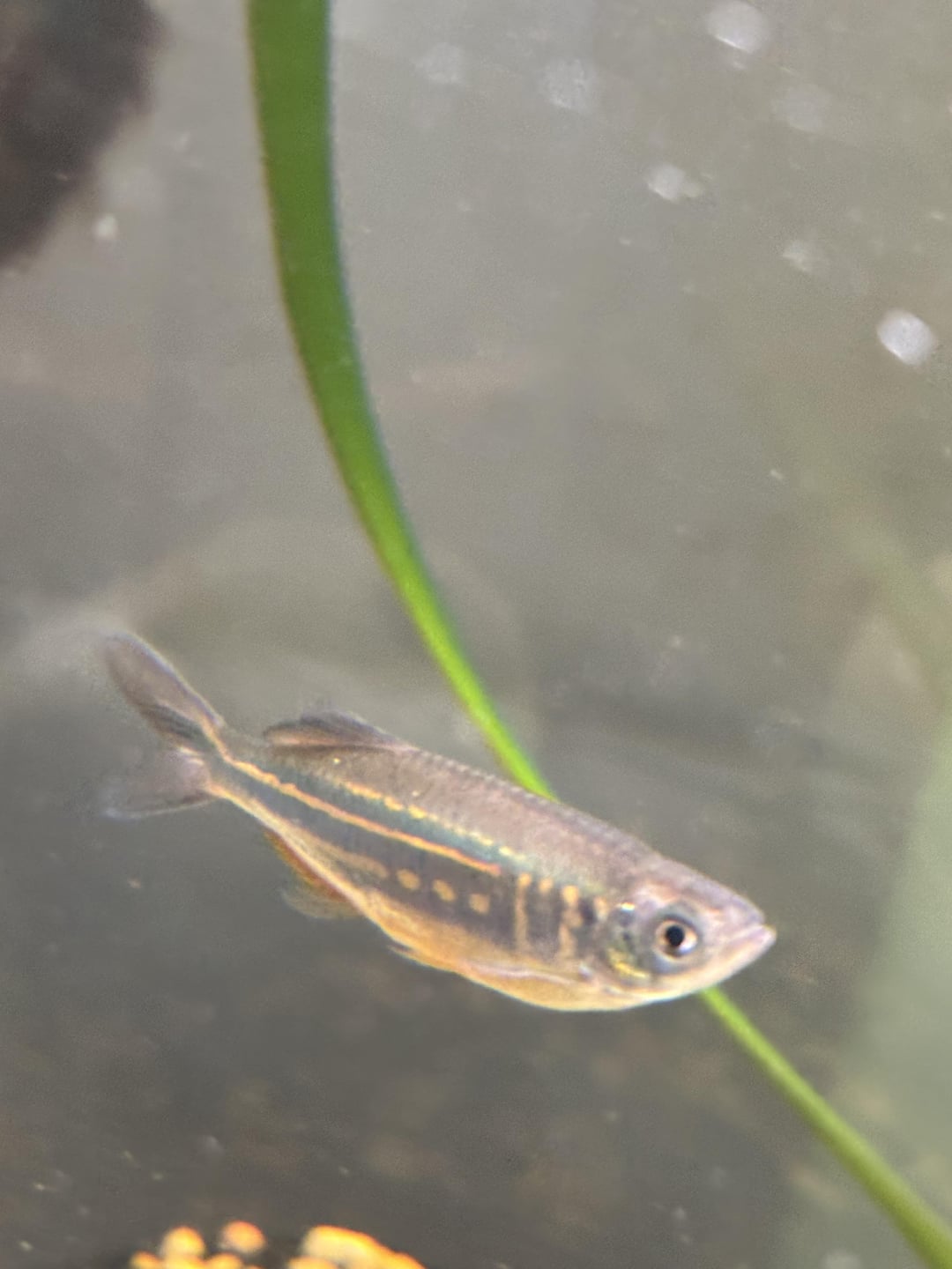 If you have space, get 5 more. They’re active and very pretty. Same size as a lot of rainbow fish, about 4 inches or so. Or go back and swap him for the fish you wanted. He won’t be happy alone.