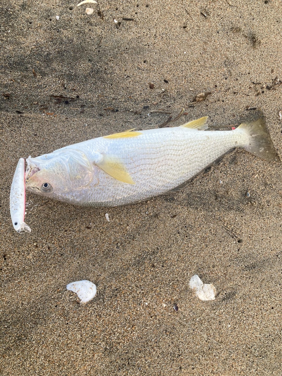 All these were caught in about a 30min span the two halibut were back to back. First hali is the biggest and just short of keeper at 21” and change. First croaker is an absolute unit at 15.5”, second was a bit smaller. LC flash minnow 110.