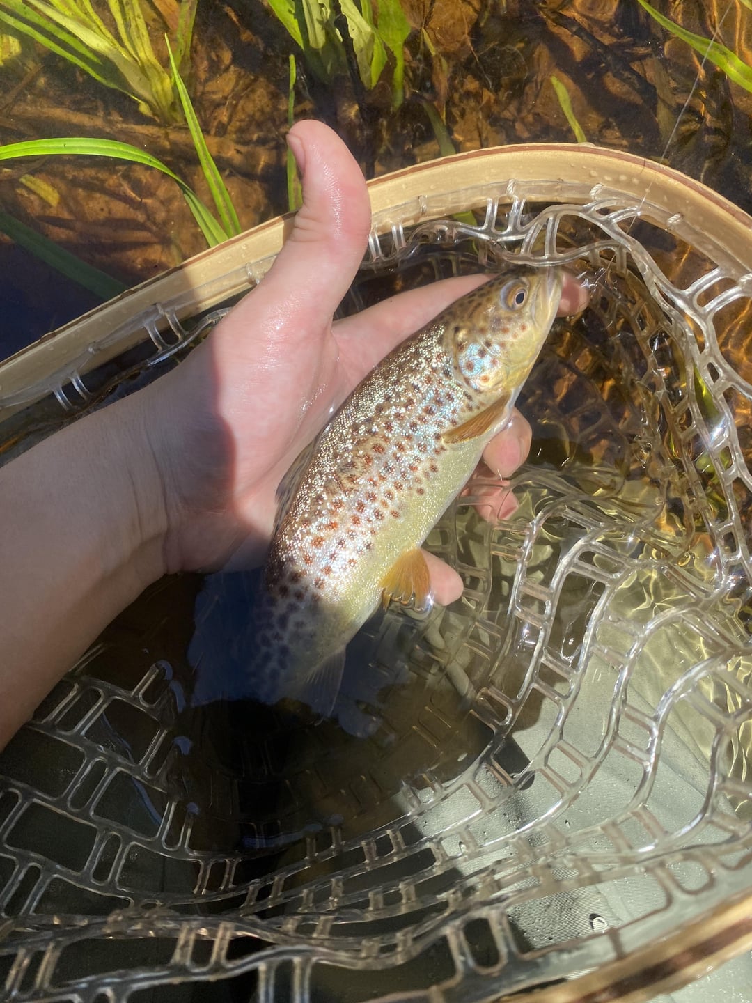 Landed my PB; Beautiful buck rainbow. Released healthy. Rocky, weedy, snaggy creek and 6lb test made for a hell of a rodeo… Not sure what he weighed but the measurement from the crease of my curled hand to the top of my tattoo is 12”. Northern Ca.