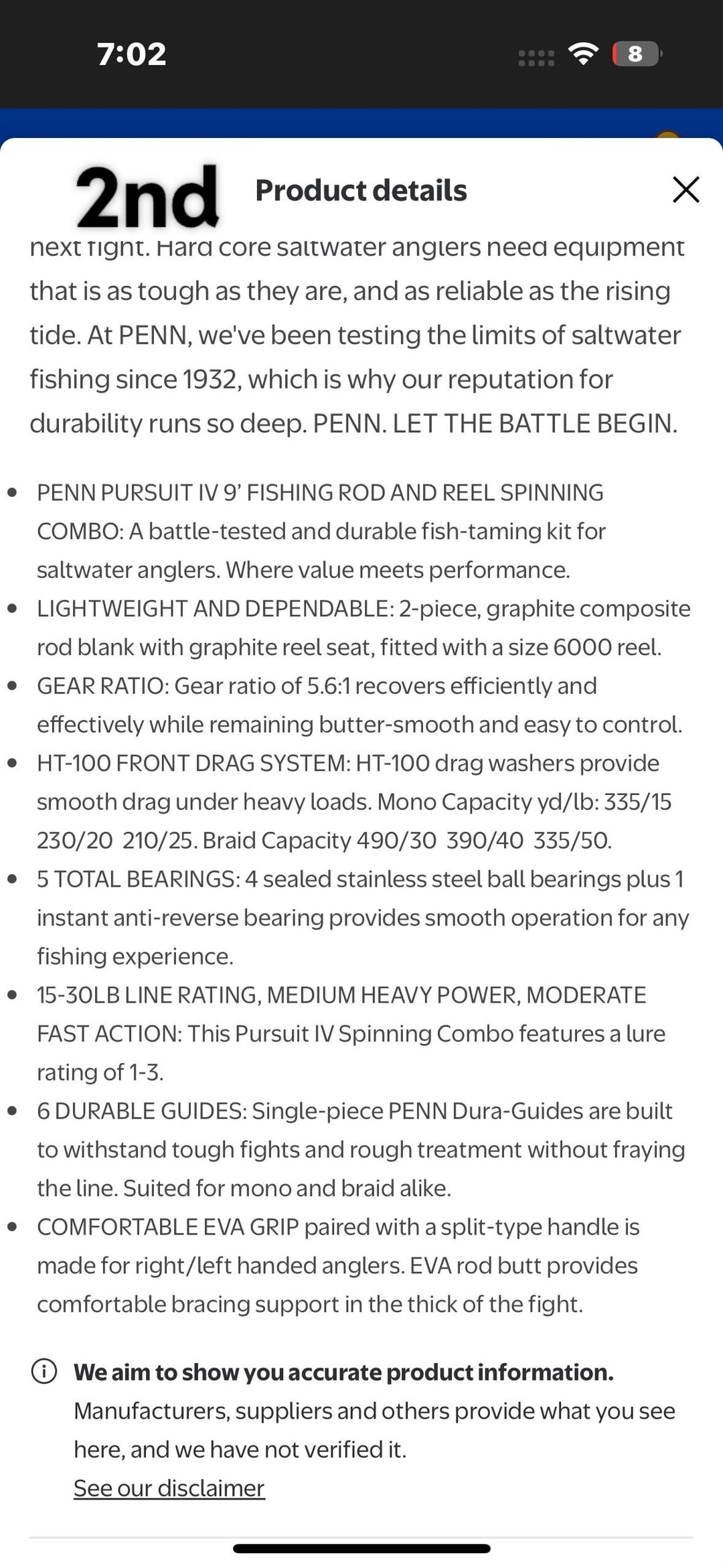 The second one, is 9ft, 6000 Reel Size, and also Medium Heavy Power, priced at $100. I’ve attached the rest of the information in the images, labeled “2nd”.