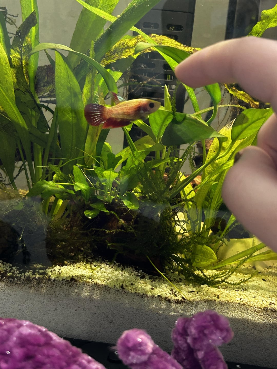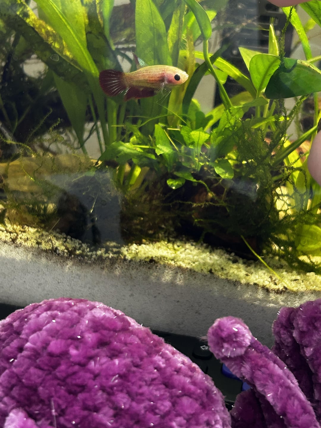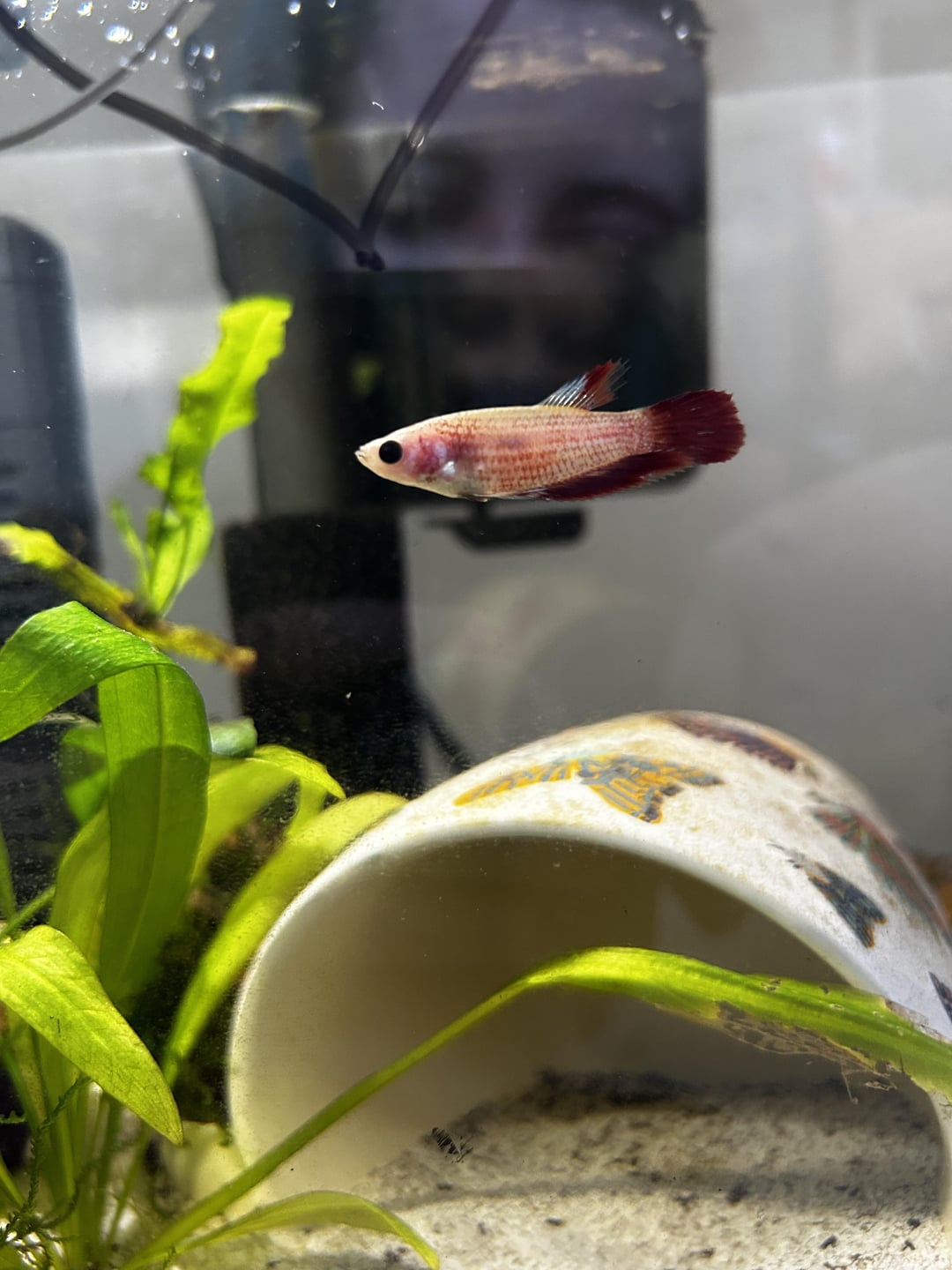 I was thinking plakat but her bottom fin is really long when she is relaxed and not mid-swim like the last pic. She is also still baby and currently mid-color change, so presumably I will have a red fish instead of a raw chicken colored fish soon 🙂