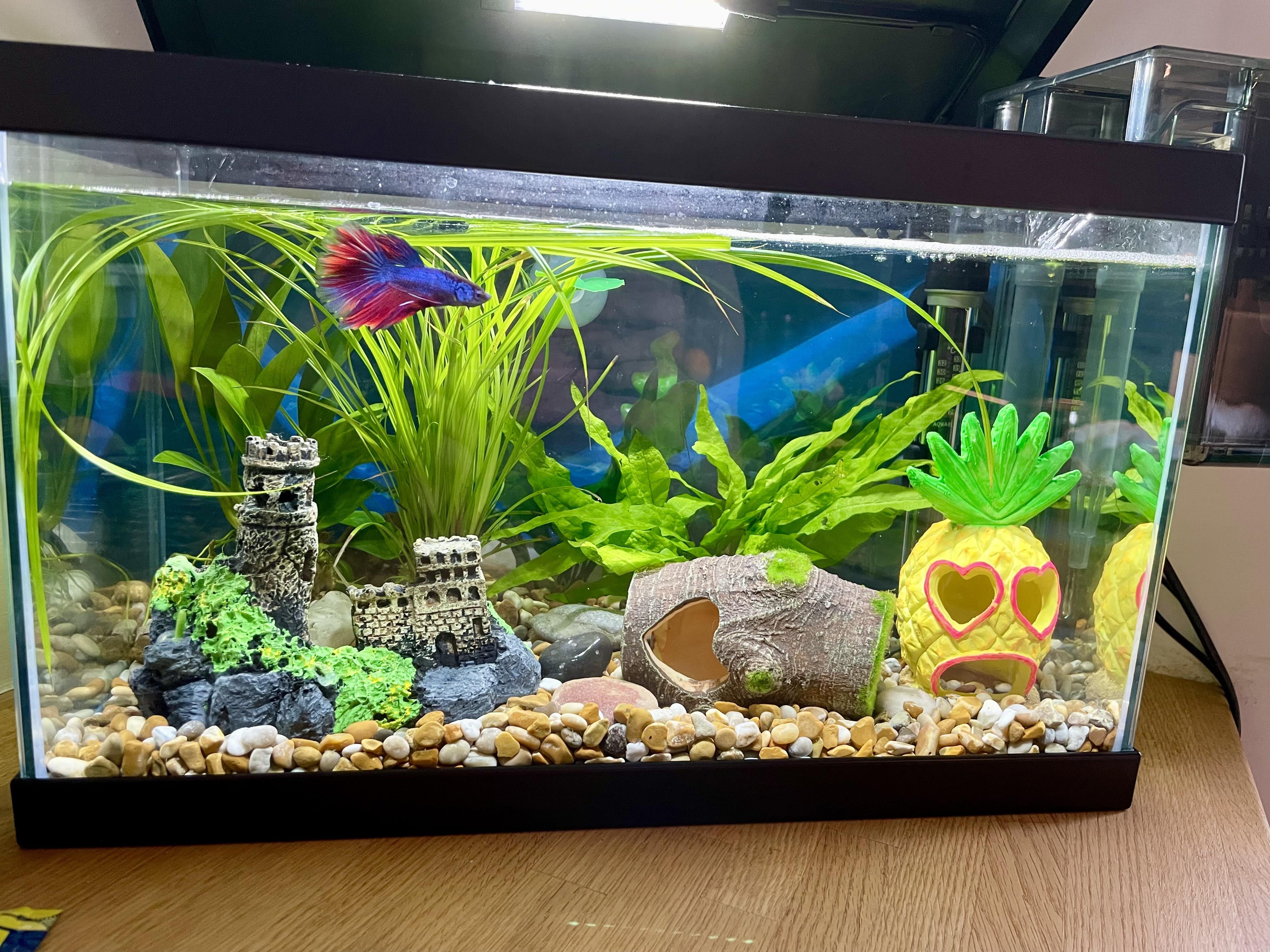 Looks great! If you’re open to investing more money a lot of bettas love the brown floating log and soft betta hammocks. For the ceramic/etc decor you want to check all edges inside and out because they tend to have sharp parts that can damage the fins. We learned this the hard way when we missed the bottom inside edges. You have a lucky fish!
