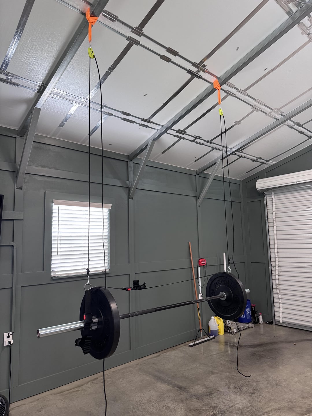 The Tie-Boss kayak hanger sling is pretty slick. My plan is to keep my kayak hoisted just above the roof rack on my car so that I just have to lower it about a foot to load it up and then just pull it up a foot or so when I’m not using it. That’s 95 pounds hanging – so the kayak should be no problem.