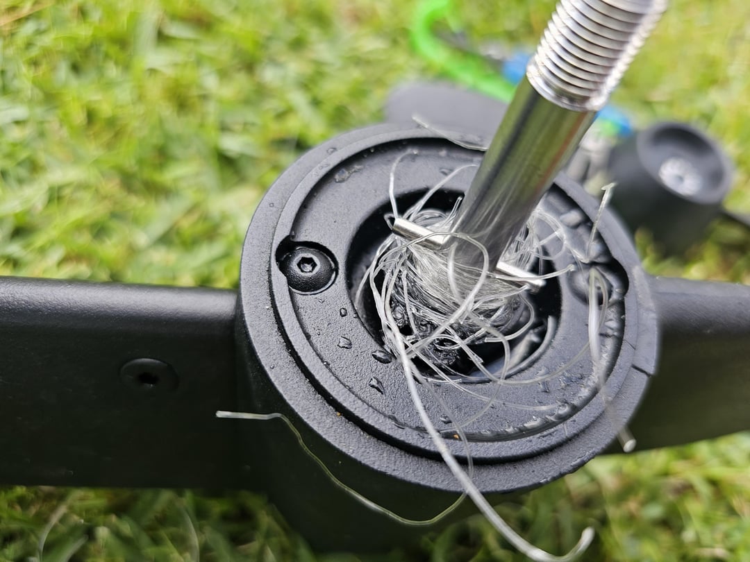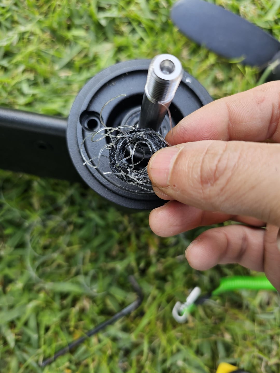 Got a bunch of trilene big game 25lb line stuck in my PDL and it seems it destroyed this plastic washer or whatever it is. I am not sure if this is a real part or fused line. Cant find it, or assembly instructions for the PDL.