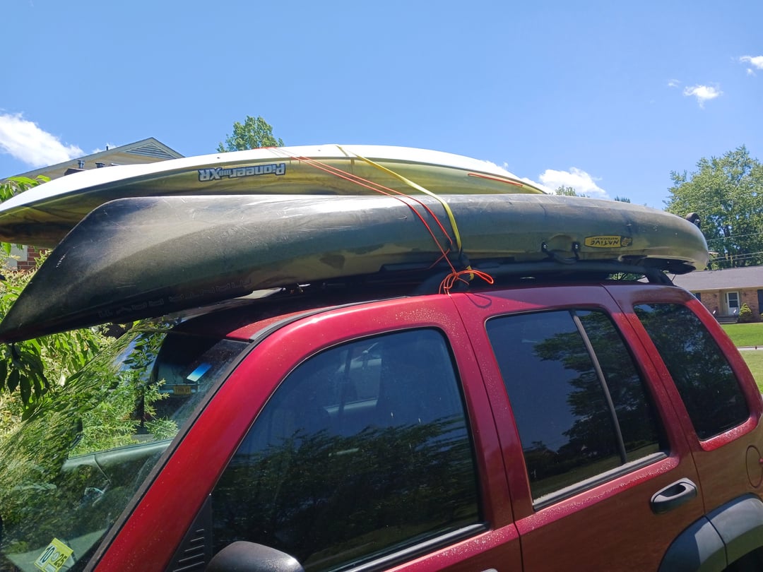 I have been transporting the kyack on the jeep roof but it's kinda a bitch getting it up there and off. I have broke the old sun beaten handles and have ordered replacements.