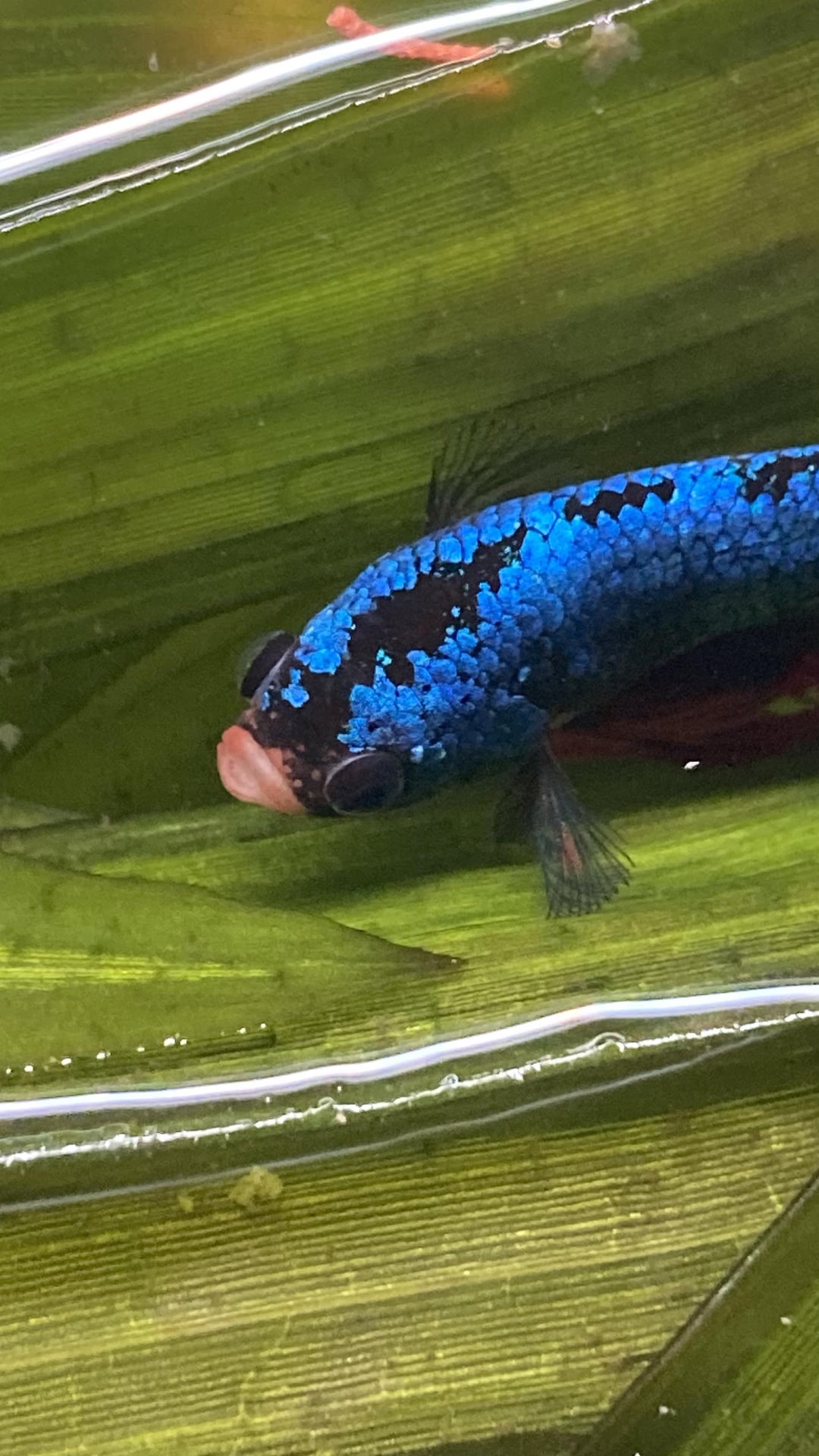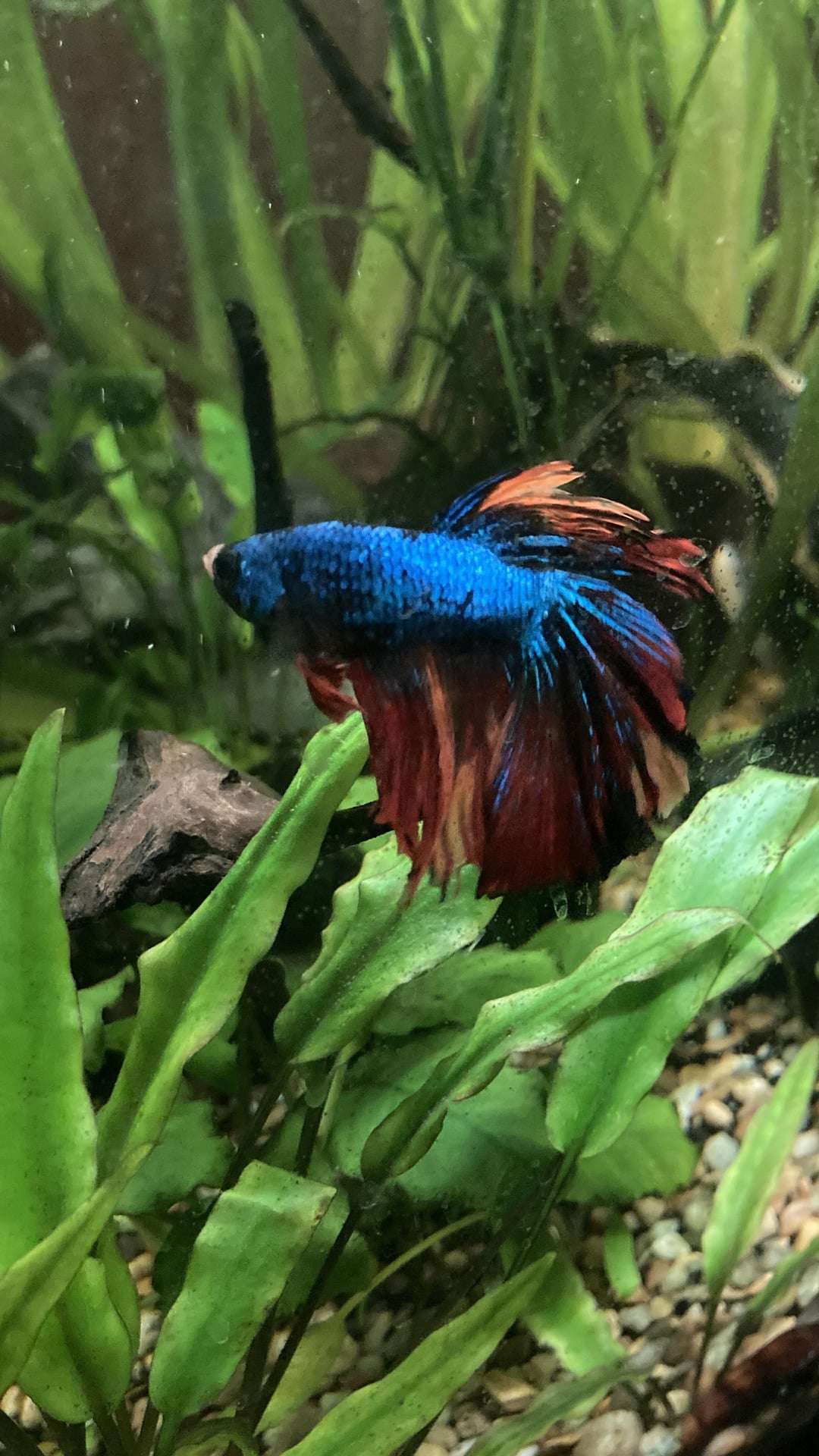 We’re in the process of moving my boyfriend out and we left the fish tank as the final project. Bubby lived happily in a 75 gallon with plenty of proper tank mates and a lush garden of plants. Unfortunately, in the time we were gone, his old roommate took it upon themselves to feed the fish. They ended up severely overfeeding, and likely resulting in an ammonia spike and the loss of many fish including my Bubby 🙁
