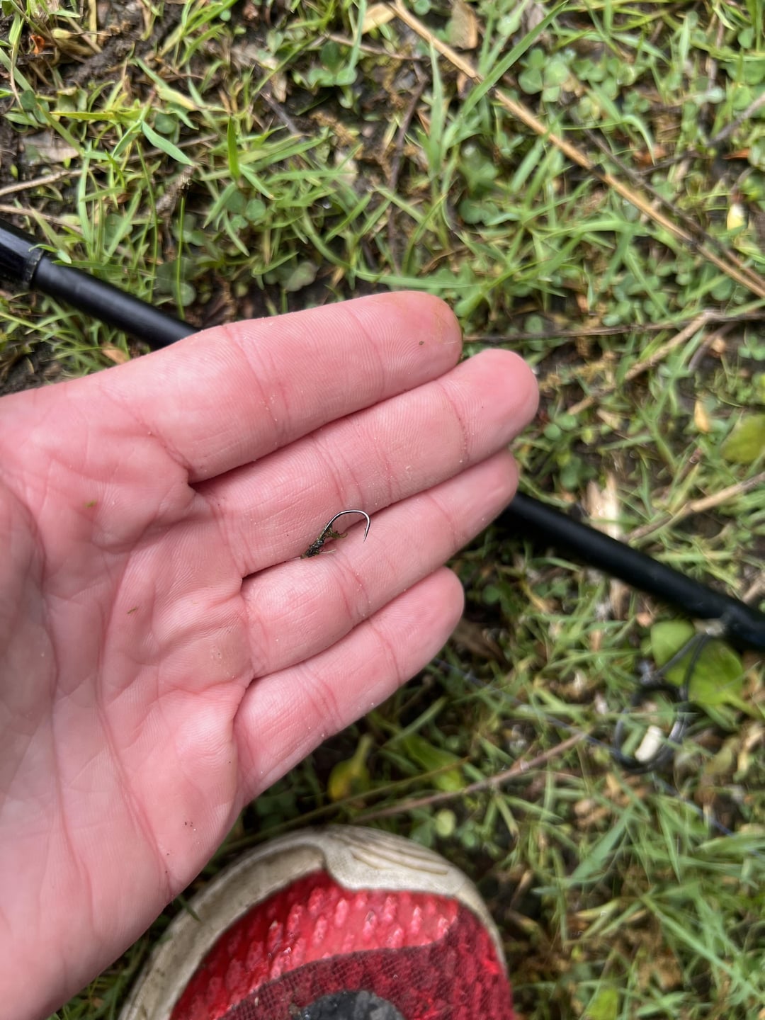This is my usual spot for carp but this time I was after bluegill for catfish bait. Put a tiny piece of bread on this hook (2nd picture) with a bobber and my drag started screaming 😂 Probably will be my most memorable catch for awhile lol
