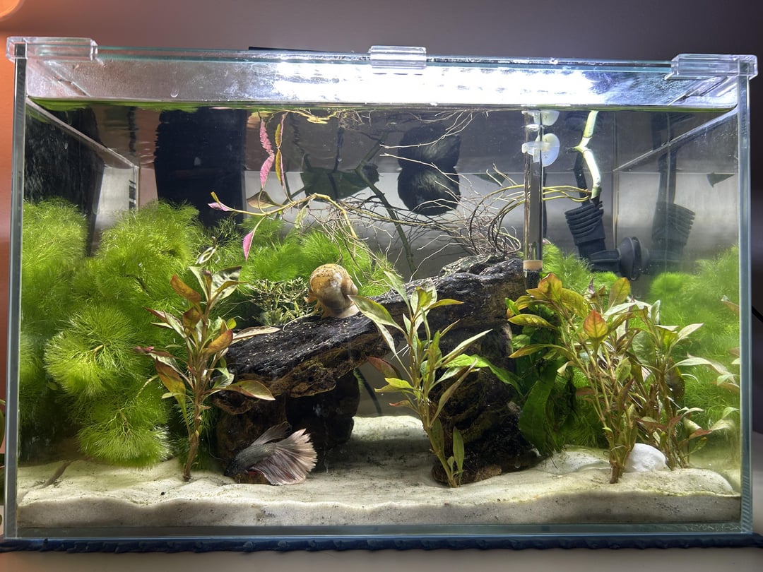 Just got my betta 🙂 his name is tortellini. How does the tank look? https://www.reddit.com/gallery/1ku2h0s Posted by twilaxo