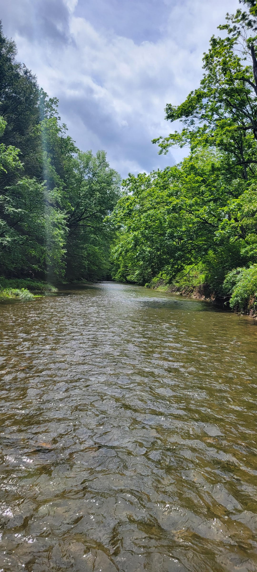 Holy crap! I got a fly rod last year and enjoyed just tooling around with bluegill at the local lake but this year I got waders and I get it now. Spent about 3-4 hours working my way up and back this creek and despite only actually catching one fallfish I'm completely sold on this. I had a couple misses and some bigger fish flashing at my fly but it almost didnt matter. Happy to be here!