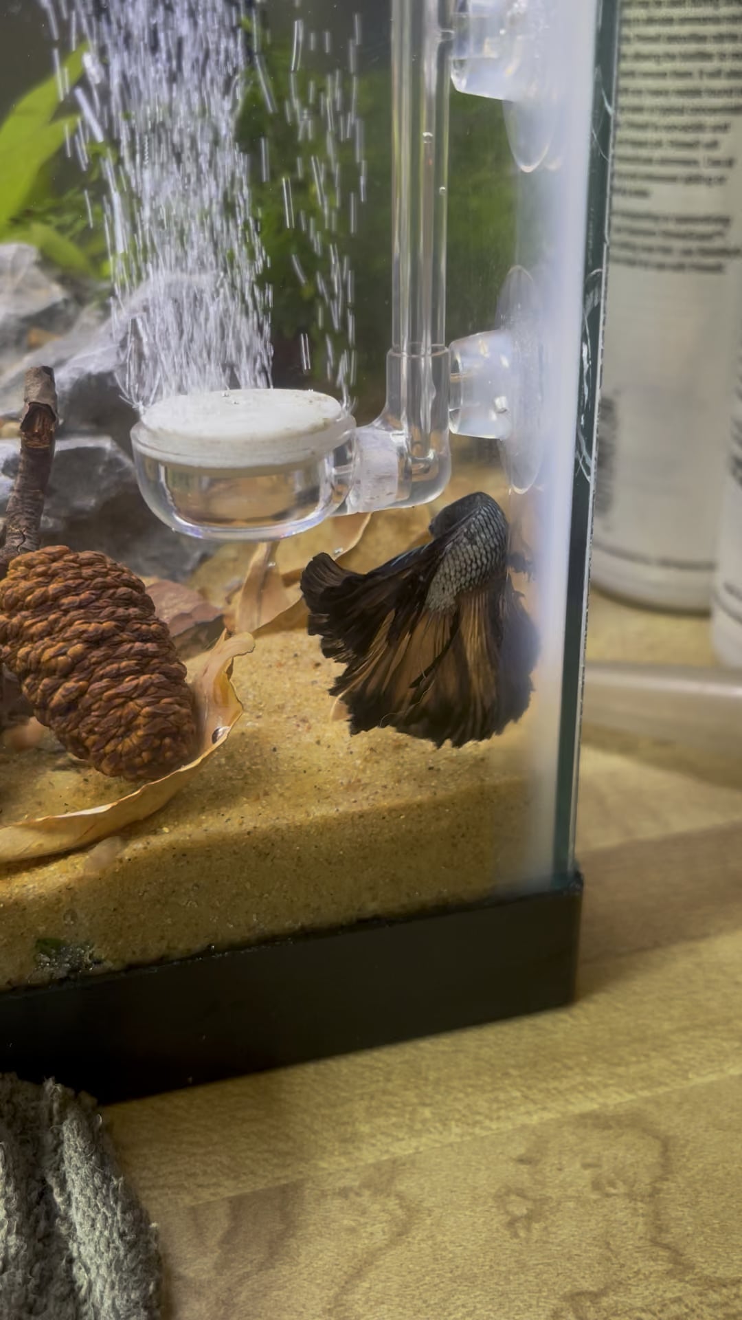 Please help me name my new boy! I’m stumped on what to name him. He’s still a bit stressed from the move but doing well so far. Also the bubbler won’t be staying there btw 🫶