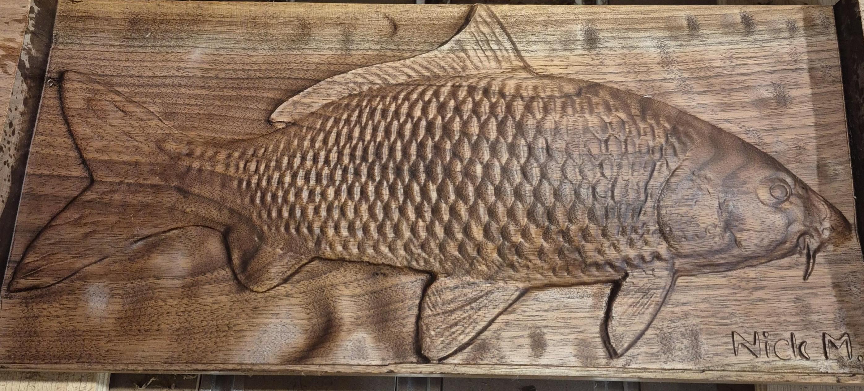 CNC Carved Common Carp. In Walnut.