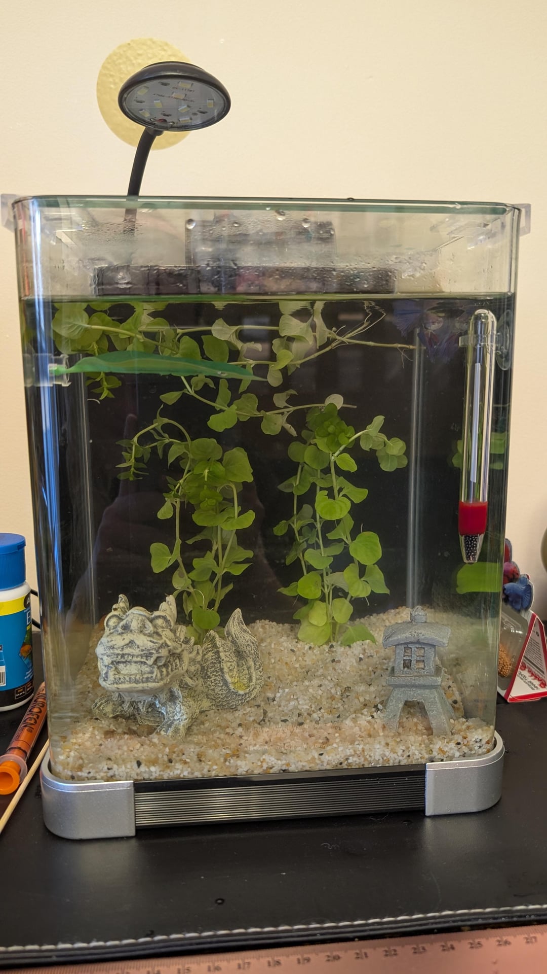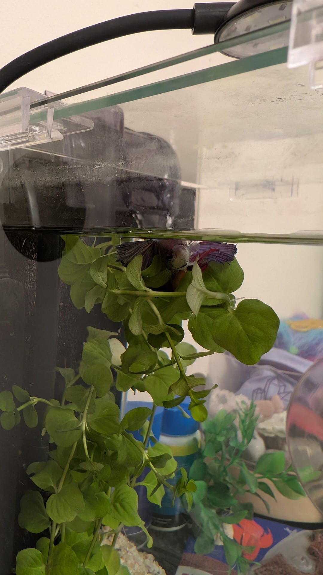 I got the fresh plants and hammock for him today after reading people having a bit of success with these and hoping it may settle him into the tank more as it's quite larger to the mason glass he was in! I was looking for a floating log but no where near me seems to sell them.