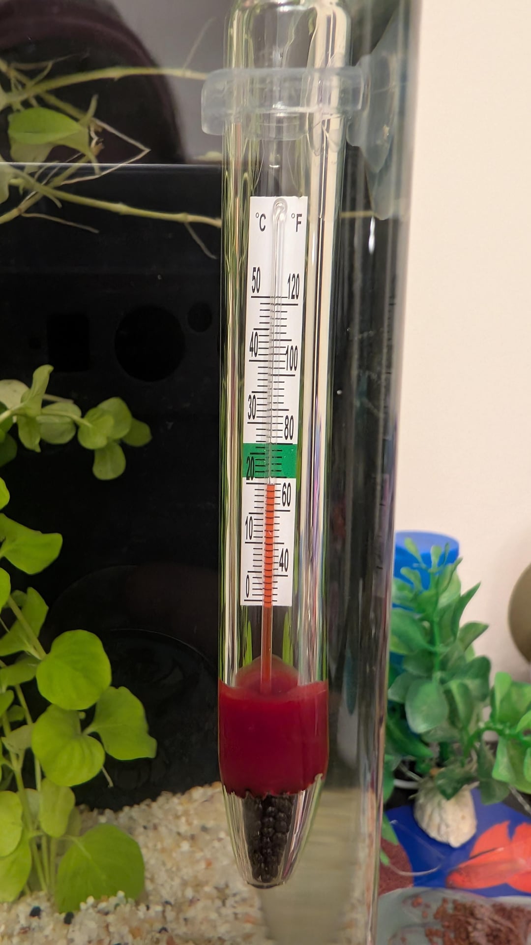 I also got a thermometer to check the heat as I believe the heater given to her is a automatic heater? And I was told 25 degrees woudl be ideal. The water is sitting just under 20 degrees.