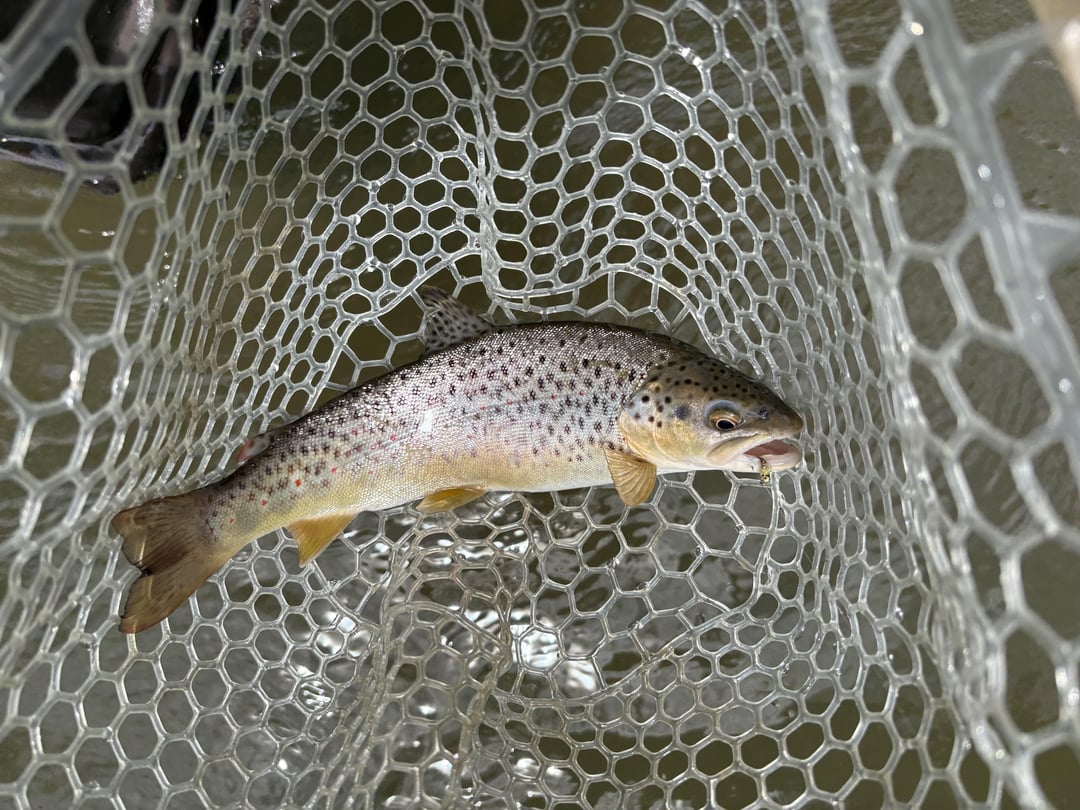 Fought like hell. Was about 8-9 inches, but fought me more than usual for that size. More vibrant colors than another brown I caught in the same stream, too. Posted by M63vf39