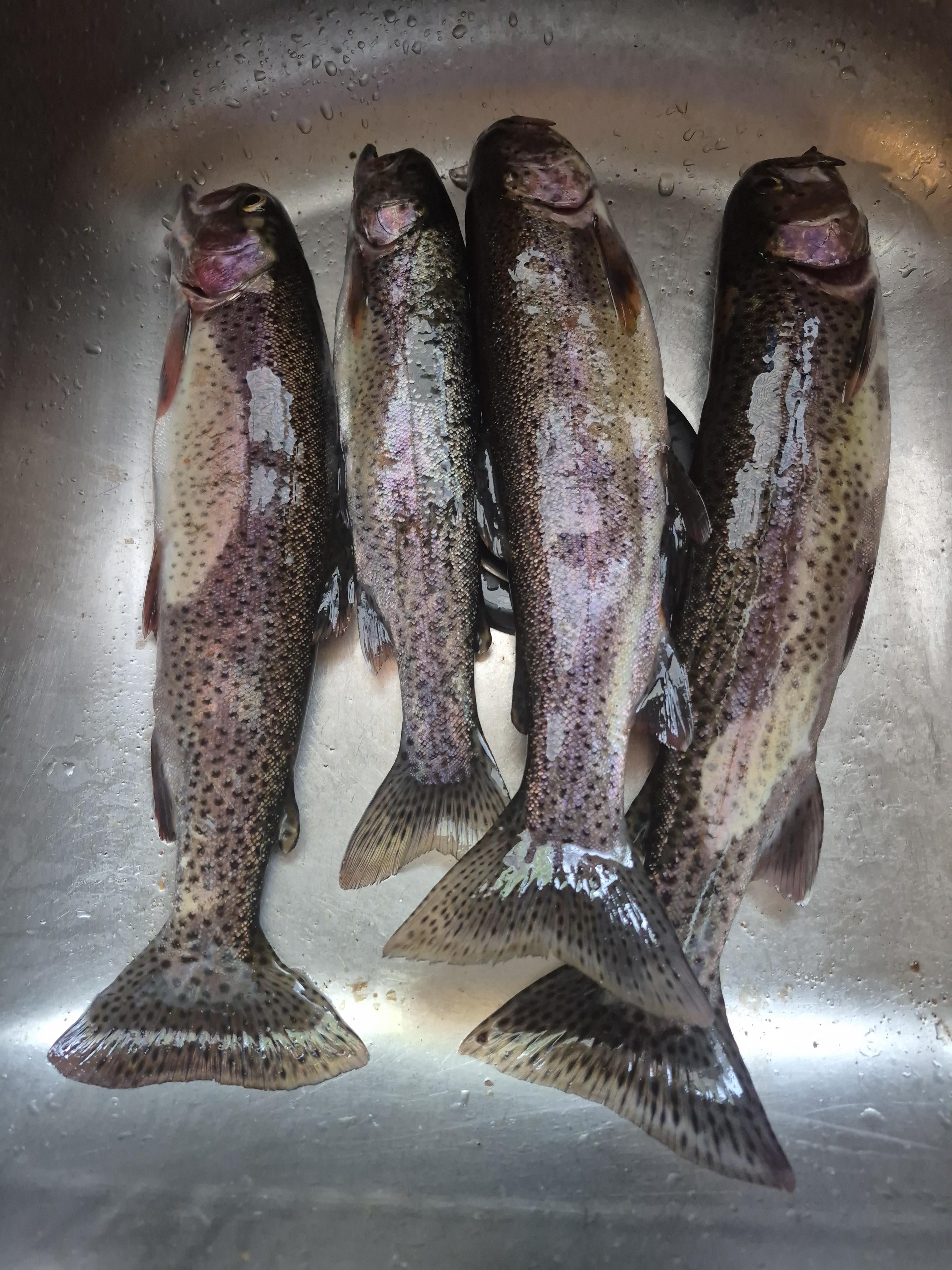 Today's catch! A15 inch, 14 inch and 13 inch, all Cut bows and one Rainbow @12 inches from a Colorado mountain lake. It rained and then even snowed on us! It was a crazy day! My son caught these. I caught a 17 inch Cut bow, but was forced to return it by a rookie Park Ranger that obviously doesn't know his fish! SMH!