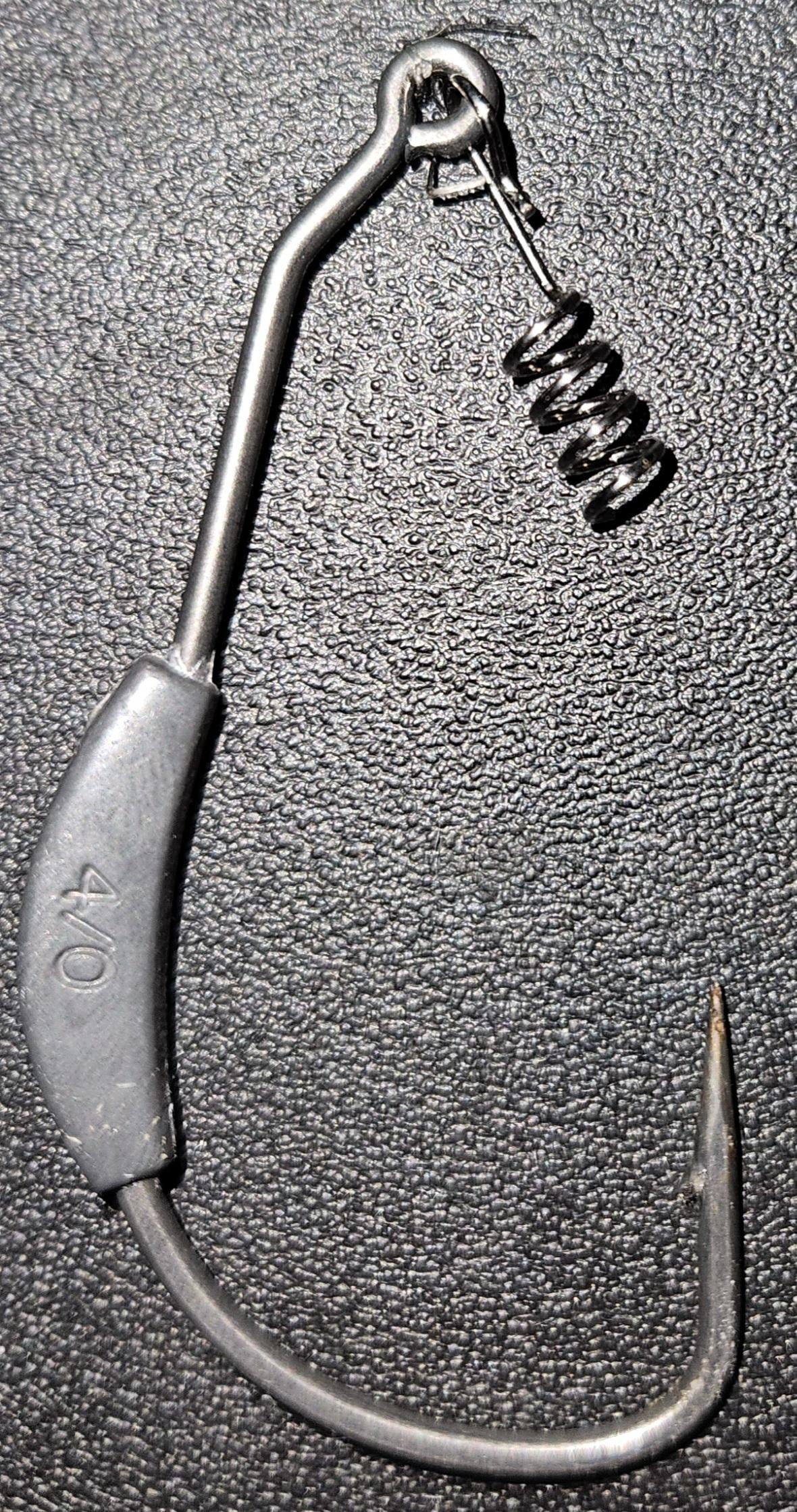 These hooks? Absolutely perfect. I love them because I almost never snag shit with them, the plastic almost always stays in place because it's corkscrewed down thank God, and because the weight is on the bottom (which is why I'm not snagging shit as often) it's so easy to just bounce shit around on the bottom. They're perfect. I take one of those dumbass coffee flavored (KVD I think?) rage claws or whatever, with the wiggly ass arms, throw it out, the motion is perfect, the bulk is under it so it isn't intrusive, and the fish can't stop themselves.