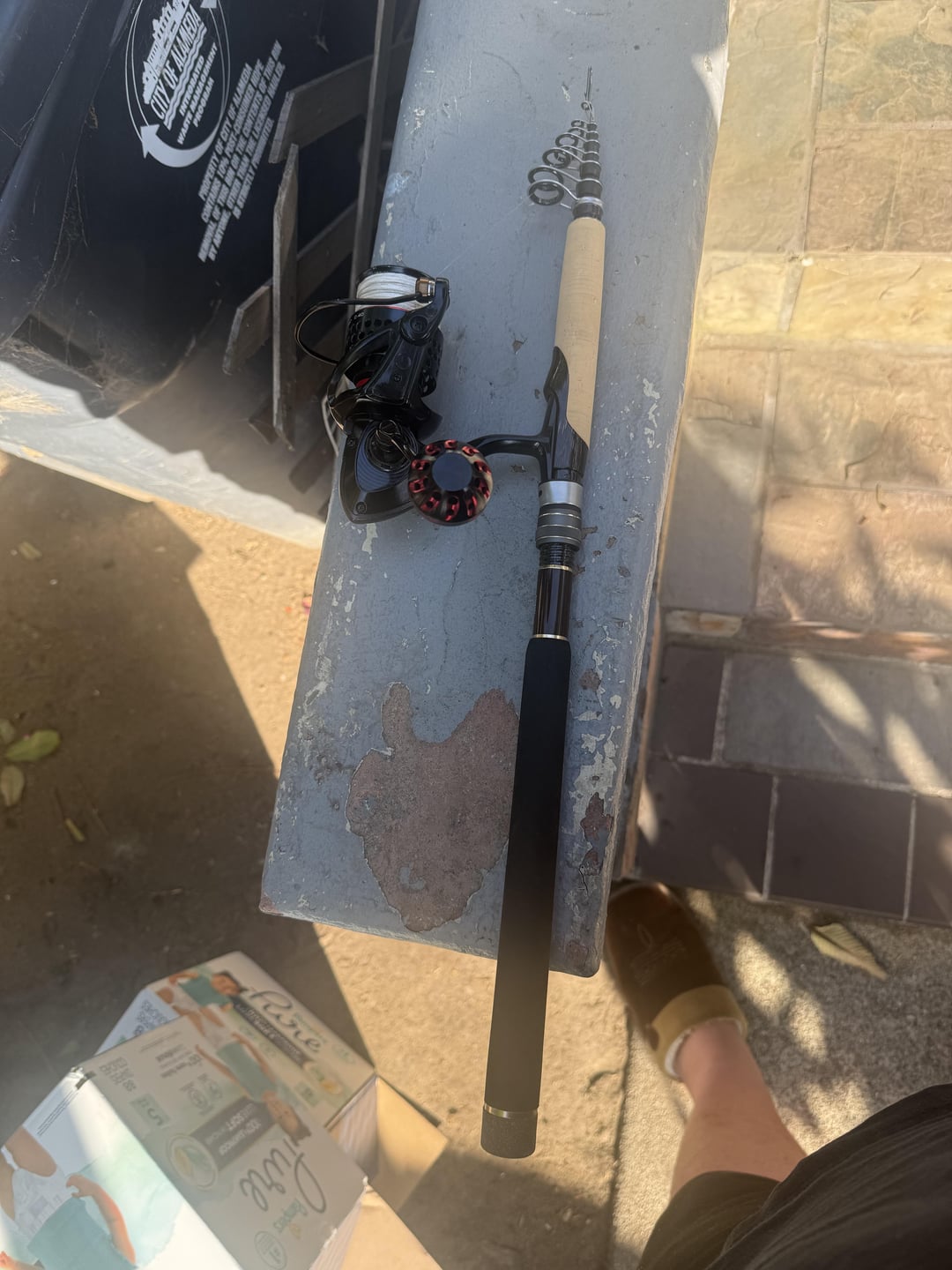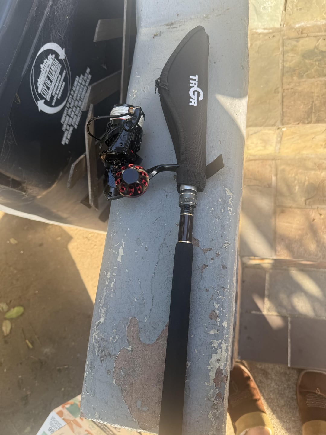 lol I doxxed myself with my trash cans. Anyways. Threw on my spare Ceymar C-40 with gomexus handle, 30lb braid(that frankly needs replacing), 15lb leader and speed clip.